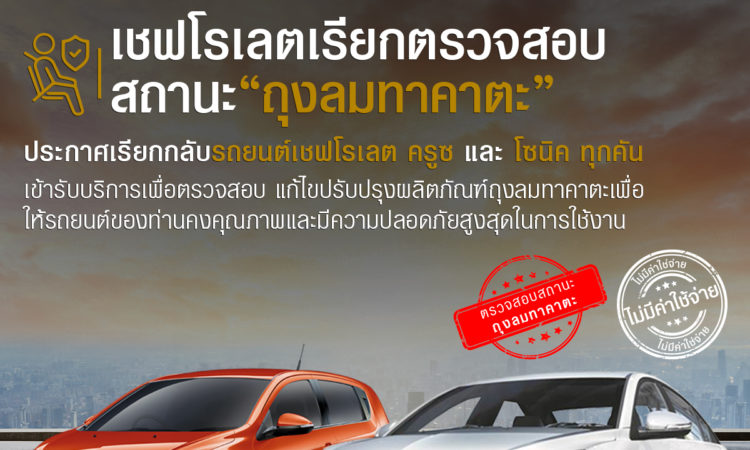 เชฟโรเลต ประเทศไทย ยังคงสานต่อคำมั่นด้านบริการหลังการขายให้กับผู้ใช้รถยนต์เชฟโรเลตในไทยเพื่อให้รถยนต์ของท่านคงคุณภาพและมีความปลอดภัยอย่างสูงสุดในการใช้งาน บริษัทขอให้ท่านเจ้าของรถยนต์เชฟโรเลต ครูซ ระหว่างรุ่นปี 2011 ถึงรุ่นปี 2015 และรถยนต์เชฟโรเลต โซนิค รุ่นปี 2013 และรุ่นปี 2014 นำรถยนต์รุ่นปีดังกล่าวเข้ามารับการเปลี่ยนถุงลมนิรภัยทาคาตะ ตามที่เชฟโรเลต ประเทศไทย เคยประกาศเรียกกลับเพื่อตรวจสอบรถยนต์ทั้งสองรุ่นเมื่อวันที่ 12 เมษายน พ.ศ. 2562 เป็นต้นมา