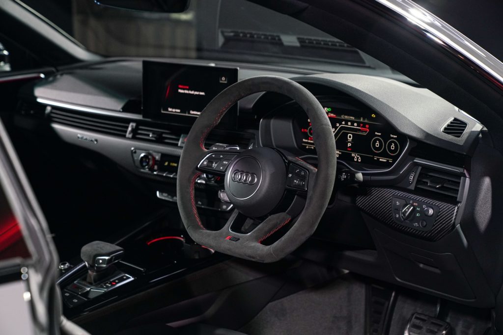 ระบบปฏิบัติการและควบคุมต่างๆ ภายใน “RS 5 Coupé quattro” ได้รับการออกแบบให้ก้าวล้ำตามคอนเซ็ปต์ใหม่ คือTouch instead of turn เพื่อให้ทุกการขับขี่ เต็มไปด้วยความมั่นใจ สนุกสุดมันส์ในทุกเส้นทางอย่างแท้จริง พวงมาลัยท้ายตัดหุ้ม Alcantara เพิ่มความมั่นใจในการขับขี่ มือจะไม่ลื่นจากพวงมาลัยอย่างแน่นอนเบาะนั่งหุ้มหนัง Fine Nappaสีดำเดินด้ายสีแดงตัดเย็บลายรังผึ้ง (honeycomb)เสริมด้วยฟังก์ชั่นนวด เข็มขัดนิรภัยสีดำตกแต่งด้วยขอบสีแดง สะดวกสบายกับจอแสดงผลการขับขี่ Audi Virtual Cockpit plus ความละเอียดสูงขนาด 12.3 นิ้วแบบ 3 มิติที่มีความละเอียดสูงปรับเปลี่ยนรูปแบบการแสดงผลในขณะการขับขี่ง่ายเพียงแค่กดปุ่ม “view” บนพวงมาลัยมัลติฟังก์ชั่นสามารถเลือกทั้งแบบ “classic” หรือแบบ “infotainment” หน้าจอแบบRS แสดงผลแบบสปอร์ตเช่นเดียวกับมาตรวัดของรถแข่งเพิ่มความปลอดภัย กับจอแสดงข้อมูลขณะขับขี่Head-up display ผู้ขับขี่สามารถมองมาตรวัดได้ชัดเจนยิ่งขึ้น ตรงกระจกบังลมหน้าหน้าจอแบบสัมผัส MMI Navigation plus ขนาด 10.1 นิ้ว สำหรับขาซิ่งอาวดี้ เพิ่มฟังก์ชั่นแสดง ค่า G ใน “RS 5 Coupéquattro”เพื่อช่วยในการวัดผลการขับเคลื่อน การเพิ่มหรือลดความเร็วของรถ หรือการเปลี่ยนทิศทางการเคลื่อนที่ ซึ่งต้องมาพร้อมกับอัตราเร่ง การออกตัวอย่างรวดเร็วซึ่งนิยมนำมาประมวลผลประสิทธิภาพการขับขี่ของนักแข่งมืออาชีพ งานนี้ต้องมีอาการหลังติดเบาะกันบ้างเพิ่มความสุนทรีย์กับSmartphone interface มาพร้อมกับระบบเสียงรอบทิศทาง Bang & Olufsen ที่ให้คุณภาพเสียงแบบ 3 มิติ ผ่านลำโพงคุณภาพสูงรวม 19 ตำแหน่ง ให้กำลังขับรวมทั้งสิ้น 755 วัตต์และระบบควบคุมอุณหภูมิ 3 โซน