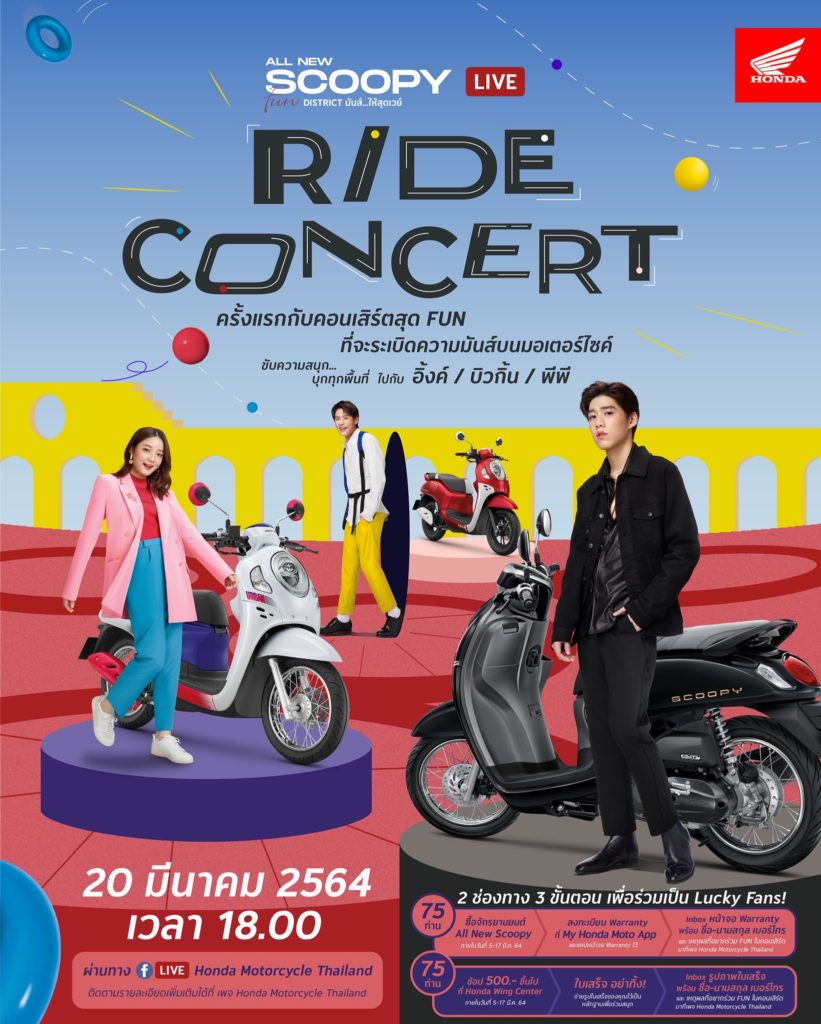 รถจักรยานยนต์ฮอนด้า เปิดตัวแคมเปญ Scoopy Troop สร้างปรากฏการณ์ความสนุกสุด Fun ชวนแฟนคลับรถแฟชั่น เอ.ที. All New Honda Scoopyร่วมสัมผัสประสบการณ์ความสนุกตลอดเดือนมีนาคมนี้ ลุ้นกระทบไหล่ “อิ้งค์-พีพี-บิวกิ้น” ในคอนเสิร์ตออนไลน์สตรีมมิ่ง ที่ทุกคนสามารถมีส่วนร่วมและรับชมพร้อมกันได้ทั่วประเทศ วันที่ 20 มีนาคมนี้ เวลา 18:00 น. ที่เฟซบุ๊กแฟนเพจ รถจักรยานยนต์ฮอนด้า : fb.com/hondamotorcyclethailand