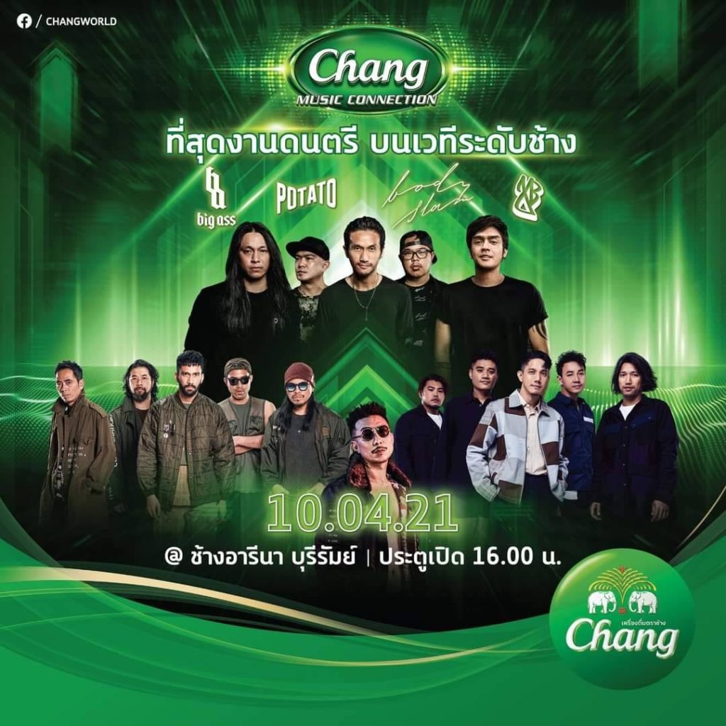 10 เมษายน 2564 คอนเสิร์ตแบบเว้นระยะห่าง Chang Music Connection รับชมในสนามฟุตบอลช้างอารีน่า กับศิลปินเบอร์หนึ่งของเมืองไทย บอดี้สแลม โปเตโต้ โจอี้บอย บิ๊กแอส ฯลฯ