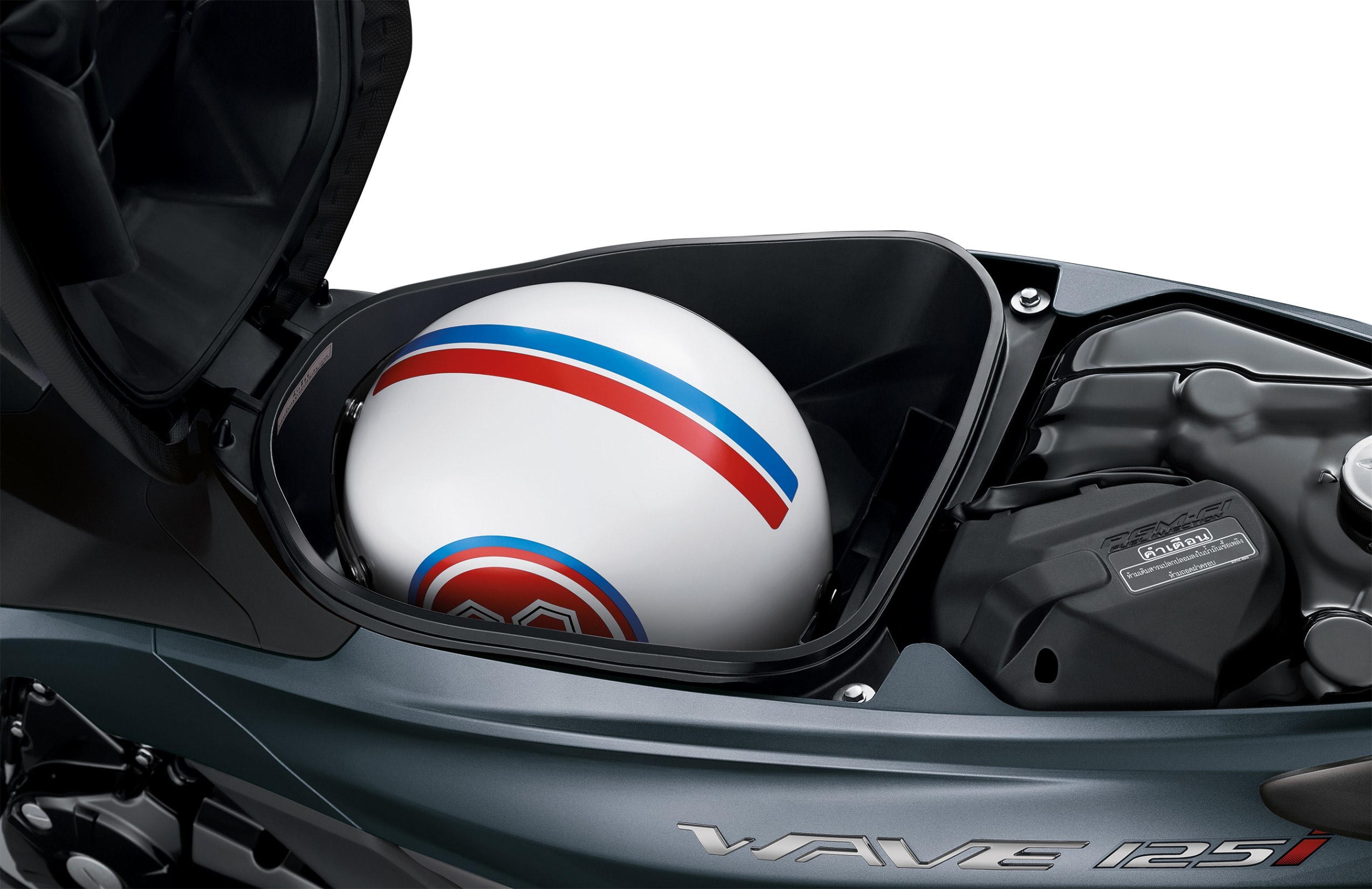 New Wave125i มาพร้อมระบบไฟหน้า LED Headlight หรูหรา เฉียบคม ส่องสว่างทันทีเมื่อสตาร์ท เรือนวัดความเร็ว Premium Amber Meter ดีไซน์เรียบหรู ให้ข้อมูลรายละเอียดต่างๆ ครบครันชัดเจน มั่นใจด้วยระบบกุญแจนิรภัย มาพร้อมม่านปิดช่องกุญแจ ให้ความสะดวก ปลอดภัย ใช้งานง่าย เพียงกดกุญแจก็เปิดกล่องใต้