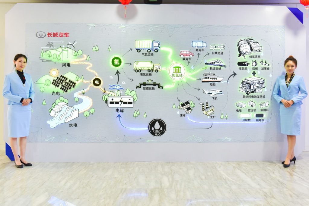 เกรท วอลล์ มอเตอร์ ตั้งเป้าที่จะผลิตรถยนต์โดยสารเซลล์เชื้อเพลิงสูงสุดเป็นอันดับ 4 ของโลก และผลิตรถบรรทุกขนาดใหญ่น้ำหนัก 49 ตันที่จะใช้พลังงานไฮโดรเจน 100 คันแรกของโลกภายในปีนี้ และจะมีการเปิดตัวรถยนต์โดยสารระดับไฮเอนด์ที่ใช้พลังงานเซลส์เชื้อเพลิงครั้งแรกในช่วงโอลิมปิกฤดูหนาวปีหน้า รวมถึงเปิดตัวยานพาหนะเพื่อการพาณิชย์ เช่น รถบรรทุกพ่วงขนาดใหญ่ ยานพาหนะขนส่งและขยายการใช้งานเซลล์เชื้อเพลิงคาร์บอนต่ำไปยังการขนส่งทางเรือและทางรถไฟ เพื่อบรรลุเป้าหมายในการขึ้นเป็นเป็นบริษัท Top 3 ในตลาดพลังงานไฮโดรเจนของโลก ภายในปี 2568