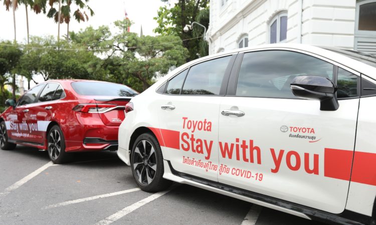 ทั้งนี้ โตโยต้าได้ดำเนินโครงการ “โตโยต้าเคียงคู่ไทย สู้ภัย COVID-19” หรือ “Toyota Stay With You” ตั้งแต่เริ่มมีสถานการณ์การแพร่ระบาดของไวรัสโควิด19 ในปี 2563 ที่ผ่านมา เพื่อร่วมบรรเทาสถานการณ์การแพร่กระจายของไวรัสมาอย่างต่อเนื่อง อาทิ การสนับสนุนรถยนต์โตโยต้าแก่กระทรวงมหาดไทย และกระทรวงสาธารณสุขเพื่อใช้ในการสนับสนุนการปฏิบัติงานของหน่วยงานภาครัฐ ซึ่งได้มีการขยายผลและส่งต่อความช่วยเหลือไปยังจังหวัดต่างๆ ด้วยความตั้งใจในการยกระดับมาตรฐานความปลอดภัยในการเดินทาง (Safety Mobility) ภายใต้แนวทางNew Normal ที่จะเป็นส่วนหนึ่งในการให้ประชาชนได้กลับมาใช้ชีวิตได้อย่างมั่นใจ นอกจากนี้ บริษัทฯ ยังได้ร่วมกับผู้แทนจำหน่ายทั่วประเทศ ผ่านการบริการพ่นน้ำยาฆ่าเชื้อในรถยนต์ โดยไม่คิดค่าบริการ และไม่จำกัดยี่ห้อ แก่ผู้ใช้รถชาวไทยไปแล้วกว่า 400,000 คัน