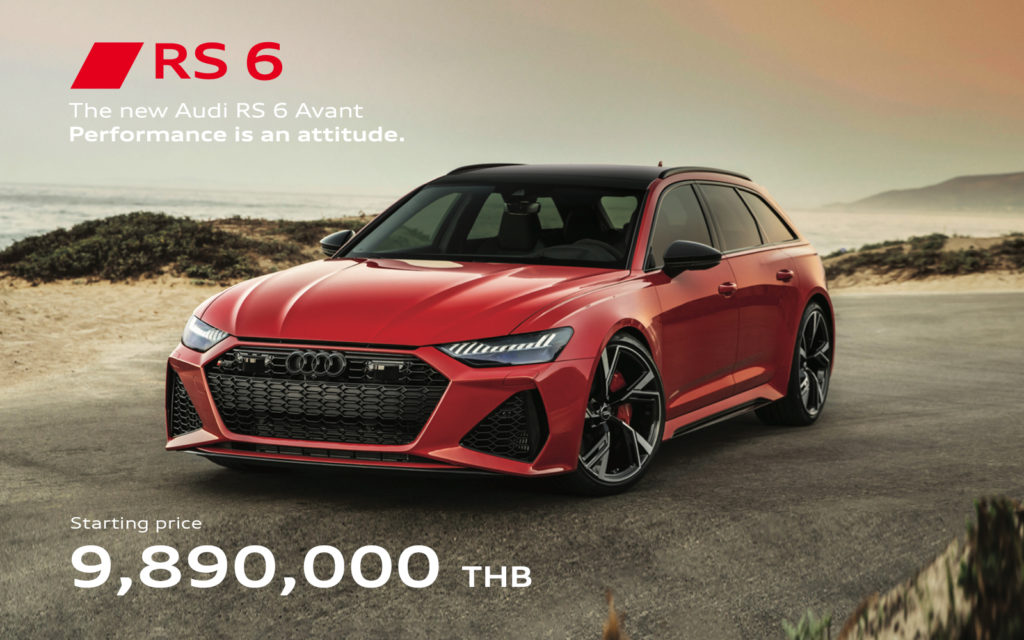 อาวดี้ ประเทศไทย เดินหน้าปฏิบัติการเชิงรุก ส่ง Avant ตัวแรง “Audi RS 6 Avant” ที่โดดเด่นด้วยพละกำลังสูงถึง 600 แรงม้า ดีไซน์เฉียบคม สปอร์ต สะกดทุกสายตา พร้อมให้หลงรักตั้งแต่แรกเห็น มาปลุกเร้าหัวใจคนชอบความเร็วแรงให้สั่นไหวขึ้นไปอีก พร้อมเปิดรับจองตั้งแต่วันนี้ ในราคาเพียง 9.89 ล้านบาท