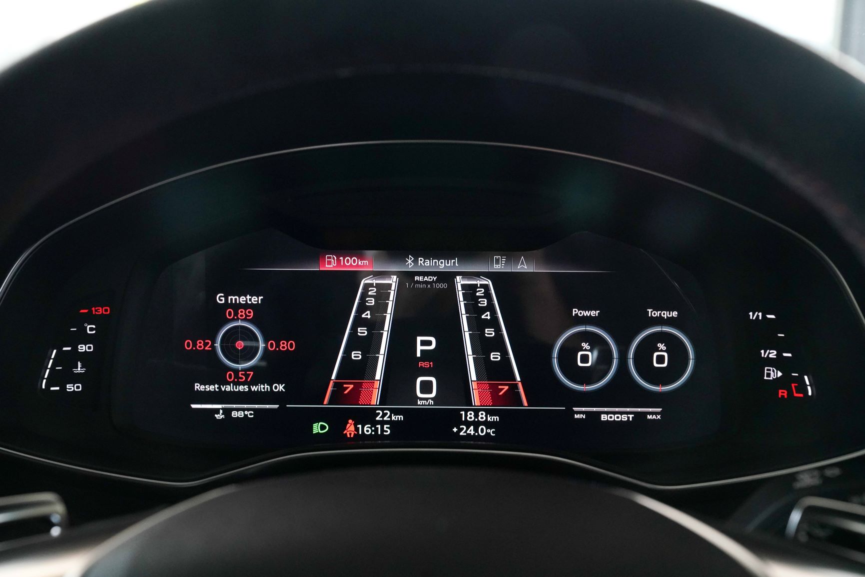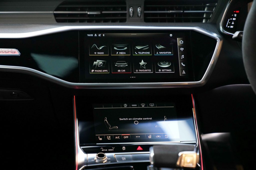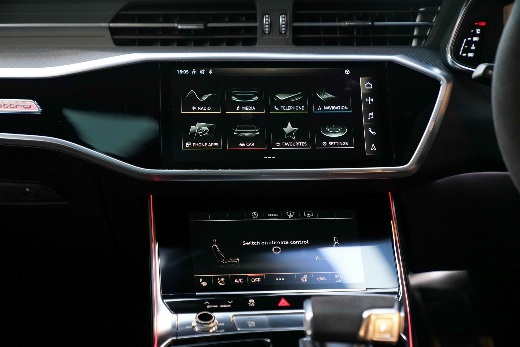 Audi RS 6 Avant ได้รับการออกแบบภายในแบบลุคสปอร์ตพรีเมียมเรียบหรู เบาะนั่งหุ้มหนัง Valcona แบบ RS Sports พร้อมสัญลักษณ์ RS เดินด้ายสีแดงรอบคัน พวงมาลัยแบบมัลติฟังก์ชั่นแบบสปอร์ตท้ายตัด และคันเกียร์หุ้มหนัง Alcantara สีดำ ห้องโดยสารตกแต่งด้วยลาย Carbon Twill Structure คมเข้ม พรมในห้องโดยสารด้านหน้าสีดำด้ายสีแดงพร้อมสัญลักษณ์ RS จอแสดงผลการขับขี่ Virtual Cockpit plus ความละเอียดสูงขนาด 12.3 นิ้ว แบบ 3 มิติ ปรับเปลี่ยนรูปแบบการแสดงผลในขณะการขับขี่ง่ายเพียงแค่กดปุ่ม “view” บนพวงมาลัยมัลติฟังก์ชั่น หน้าจอแบบ RS แสดงผลแบบสปอร์ตเช่นเดียวกับมาตรวัดของรถแข่ง จอแสดงผล MMI Navigation plus ด้วยปลายนิ้วสัมผัสขนาด 10.1 นิ้ว มาพร้อมกล้อง 360 องศา