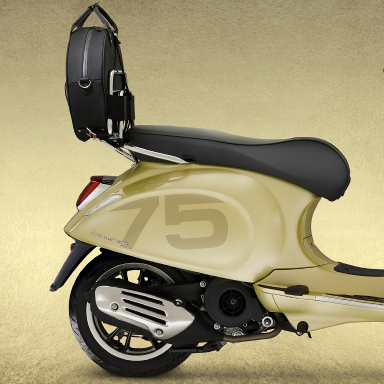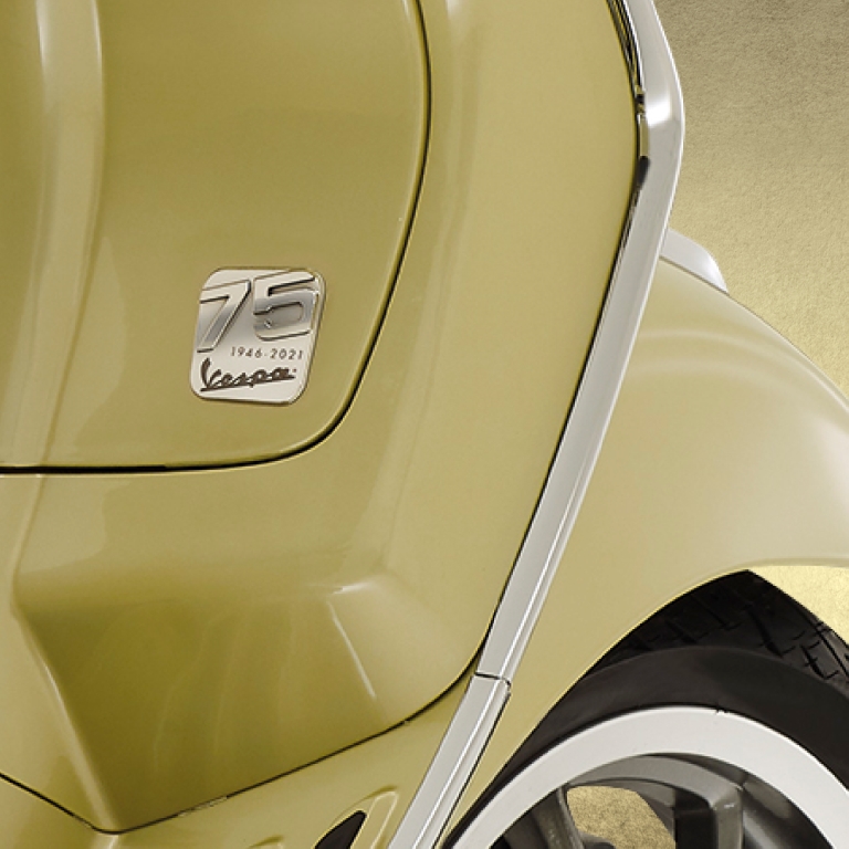 เฉดสีแบบร่วมสมัยที่ได้แรงบันดาลใจมาจากสีที่ได้รับความนิยมในยุค ‘40s “สีทอง Giallo 75th” ยังชวนให้รำลึกถึงความสำเร็จ จิตวิญญาณแห่งการสร้างนวัตกรรม และความหลงใหลในสไตล์แฟชั่นของเวสป้า พร้อมลายกราฟิกเลข 75 สัญลักษณ์แห่งการเฉลิมฉลองดีไซน์พิเศษเฉพาะรุ่น
