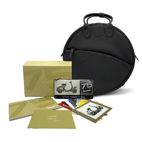 - Welcome Card 2. คู่มือรถ 3. แผ่นเพลทเวสป้าสไตล์วินเทจ 4. โปสการ์ดเวสป้าจำนวน 8 ใบ บอกเล่าประวัติศาสตร์ตลอด 8 ทศวรรษของเวสป้า และ 5. กระเป๋าสัมภาระทรงกลมจากดีไซน์กล่องเก็บยางอะไหล่รุ่นคลาสสิก (พร้อมผ้าหุ้มกันน้ำ) เป็นอีกสองรุ่นพิเศษที่เหล่านักสะสมและแฟนคลับตัวยงของเวสป้าห้ามพลาด