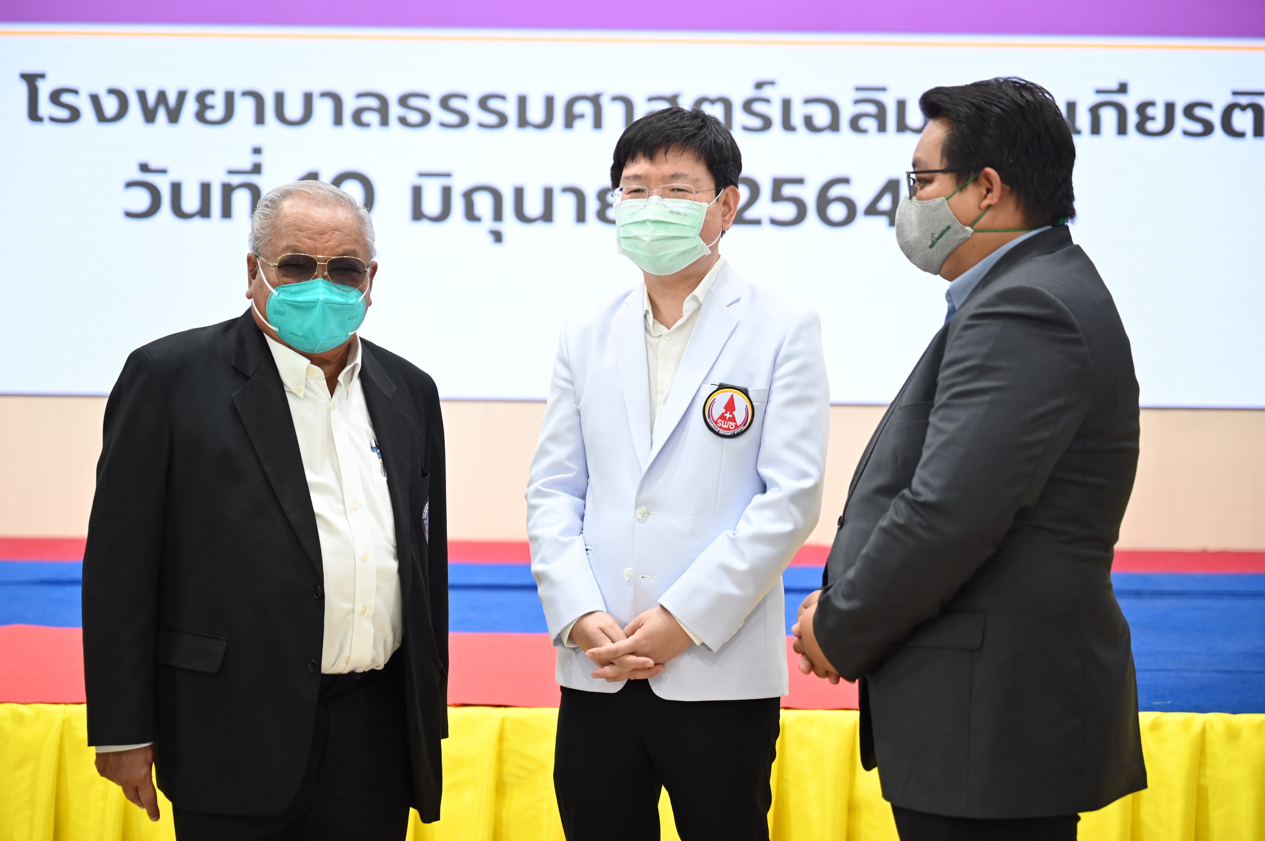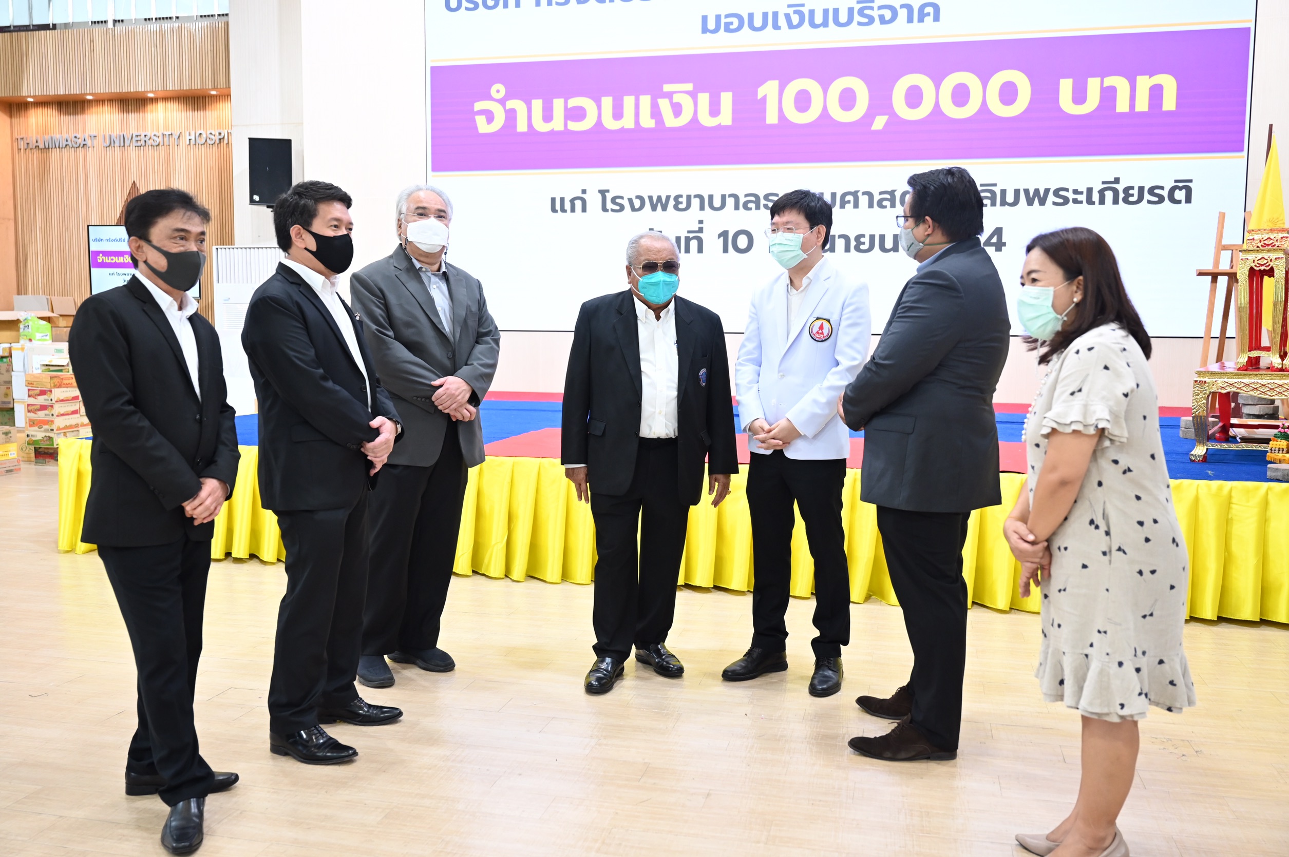 ดร.ปราจิน เอี่ยมลำเนา ประธานกรรมการบริหาร และประธานเจ้าหน้าที่บริหารบริษัทกรังด์ปรีซ์ อินเตอร์เนชั่นแนล จำกัด (มหาชน) พร้อมด้วยคณะผู้บริหาร คุณจาตุรนต์ โกมลมิศร์ ประธานเจ้าหน้าที่ปฏิบัติการด้านการตลาดและการขาย, คุณอโณทัย เอี่ยมลำเนา ประธานเจ้าหน้าที่ปฏิบัติการด้านพัฒนาธุรกิจ และคุณพีระพงศ์ เอี่ยมลำเนา ประธานเจ้าหน้าที่ปฏิบัติการด้านผลิตสื่อ ร่วมมอบเงินสมทบทุน 100,000 บาท โดยรองศาสตราจารย์ นายแพทย์พฤหัส ต่ออุดม ผู้อำนวยการโรงพยาบาลธรรมศาสตร์เฉลิมพระเกียรติ เป็นตัวแทนรับมอบเพื่อนำไปใช้ประโยชน์ในการดูแลรักษาผู้ป่วยโควิด-19 ต่อไป