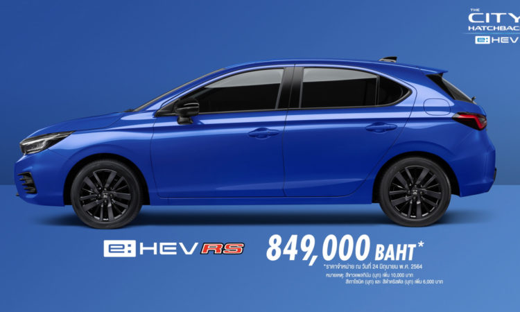 บริษัท ฮอนด้า ออโตโมบิล (ประเทศไทย) จำกัด ตอกย้ำตำแหน่งผู้บุกเบิกและผู้นำเซกเมนต์ซิตี้คาร์ในประเทศไทย เปิดตัว ฮอนด้า ซิตี้ แฮทช์แบ็ก อี:เอชอีวี ใหม่ ครั้งแรกในโลก ยนตรกรรมซิตี้คาร์แฮทช์แบ็กฟูลไฮบริด ที่จะมาเสริมความแข็งแกร่งของไลน์อัปไฮบริดของฮอนด้าไปอีกขั้น และเติมเต็มความสมบูรณ์แบบของ “เดอะ ซิตี้ ซีรีส์” (The City Series) มาพร้อมจุดเด่นเทคโนโลยี Full Hybrid อันทรงพลัง กับระบบขับเคลื่อน Sport Hybrid i-MMD มั่นใจในทุกการขับขี่ด้วยเทคโนโลยีความปลอดภัยอัจฉริยะ “ฮอนด้า เซนส์ซิ่ง” (Honda SENSING) พร้อมด้วยเอกลักษณ์ความอเนกประสงค์กับเบาะนั่ง อัลตราซีท (ULTR) ครบครันด้วยเทคโนโลยีเพื่อความปลอดภัยและฟังก์ชันการใช้งานระดับพรีเมียม ดีไซน์สปอร์ตทั้งภายนอกและภายใน ด้วยดีไซน์สไตล์ RS รอบคัน เสริมเอกลักษณ์ยนตรกรรมไฮบริดด้วยโลโก้ H Mark ตกแต่งกรอบสีฟ้า และโลโก้ e:HEV พร้อมแนะนำสีใหม่สุดเอกซ์คลูซีฟกับสีน้ำเงินบริลเลียนท์ สปอร์ตตี้ (เมทัลลิก) เสริมความมั่นใจในการใช้งานด้วยการรับประกันอายุการใช้งานแบตเตอรี่ไฮบริดถึง 10 ปี และรับประกันระบบไฮบริดทั้งระบบ 5 ปี ไม่จำกัดระยะทาง* อีกทั้งฟรีค่าแรงในการเช็กระยะเป็นเวลา 5 ปี หรือ 100,000 กิโลเมตร* (อย่างใดอย่างหนึ่งถึงก่อน) คุ้มค่าเกินคลาส ด้วยราคาจำหน่ายรุ่น e:HEV RS 849,000 บาท