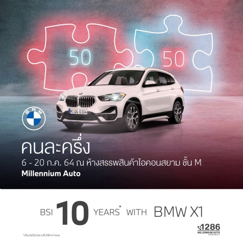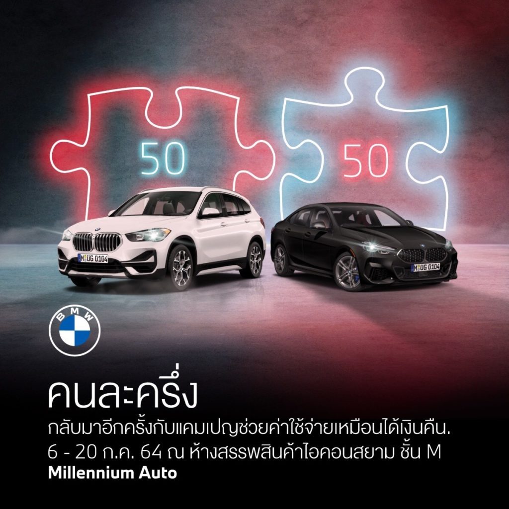 มิลเลนเนียม ออโต้ ใจดี ช่วยคุณลดค่าใช้จ่าย ให้สามารถเป็นเจ้าของรถยนต์ บีเอ็มดับเบิลยู,มินิ และมอเตอร์ไซค์ บีเอ็มดับเบิลยู มอเตอร์ราด ได้สบายๆ กับแคมเปญ ‘คนละครึ่ง’ จะดาวน์หรือผ่อนก็จ่ายแค่ครึ่งเดียว ที่เจริญนคร ฮอลล์ ชั้น M ศูนย์การค้าไอคอนสยาม ระหว่างวันที่6-20 กรกฎาคม 2564 หรือรับข้อเสนอพิเศษได้ที่โชว์รูม มิลเลนเนียม ออโต้ ทุกสาขา
