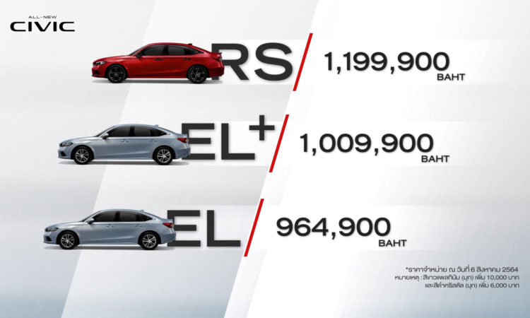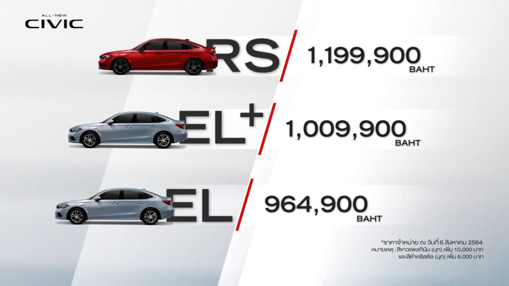 ฮอนด้า ซีวิค ใหม่ มีให้เลือกทั้งหมด 3 รุ่นย่อย ได้แก่