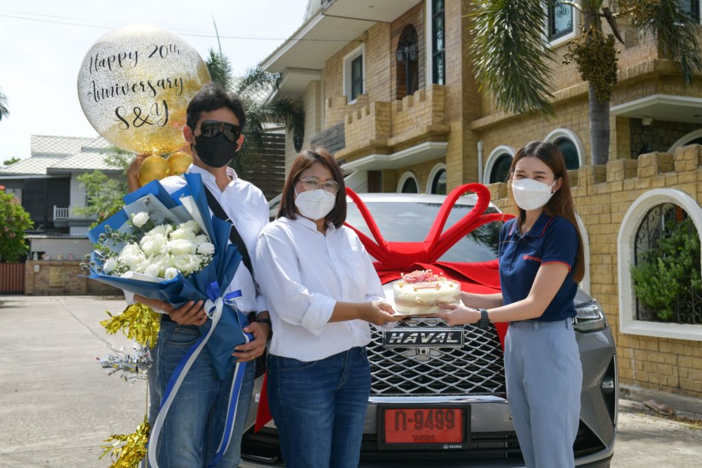 ล่าสุด เกรท วอลล์ มอเตอร์ ได้ส่งมอบรถแบบ Door-to-Door Delivery Service รูปแบบพรีเมียม ณ ร้าน RAFFINE CAFÉ RESTAURANT & THE SHE’S HOUSE จังหวัดชลบุรี เพื่อเพิ่มประสบการณ์สุดเอกซ์คลูซีพให้กับลูกค้าที่ต้องการมอบรถยนต์ All New HAVAL H6 Hybrid SUV ให้เป็นของขวัญสุดพิเศษให้กับคู่รัก เนื่องในโอกาสฉลองครบรอบการแต่งงาน โดยทีมงานได้ทำความสะอาดและตรวจเช็คสภาพรถยนต์อย่างเคร่งครัด เพื่อให้มั่นใจได้ว่ารถทุกคันอยู่ในสภาพสมบูรณ์พร้อมส่งมอบ และเป็นไปตามนโยบายด้านความปลอดภัยในช่วงสถานการณ์