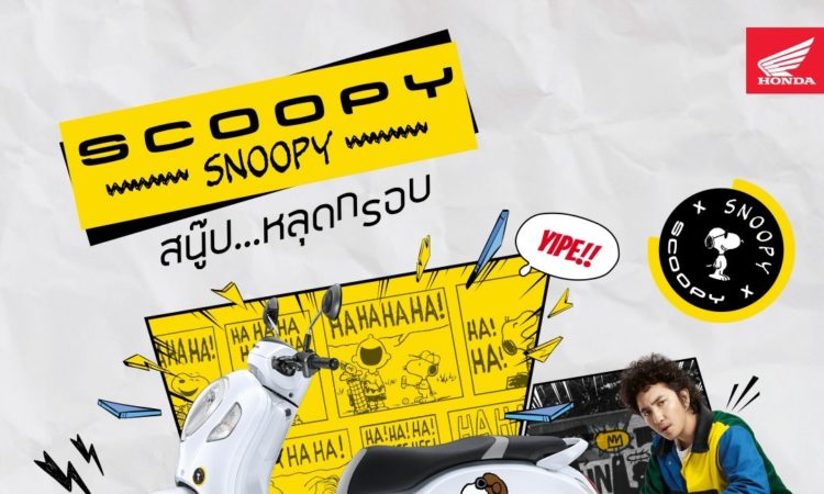 ผสานความสนุกและความกวน Scoopy ไอคอนรถจักรยานยนต์ที่เต็มไปด้วยความสนุก และ Snoopy ไอคอนการ์ตูนที่เป็นสัญลักษณ์ของความกวน หลุดกรอบจากการ์ตูน 4 ช่องของหนังสือพิมพ์อเมริกัน ส่งมอบความมันส์
