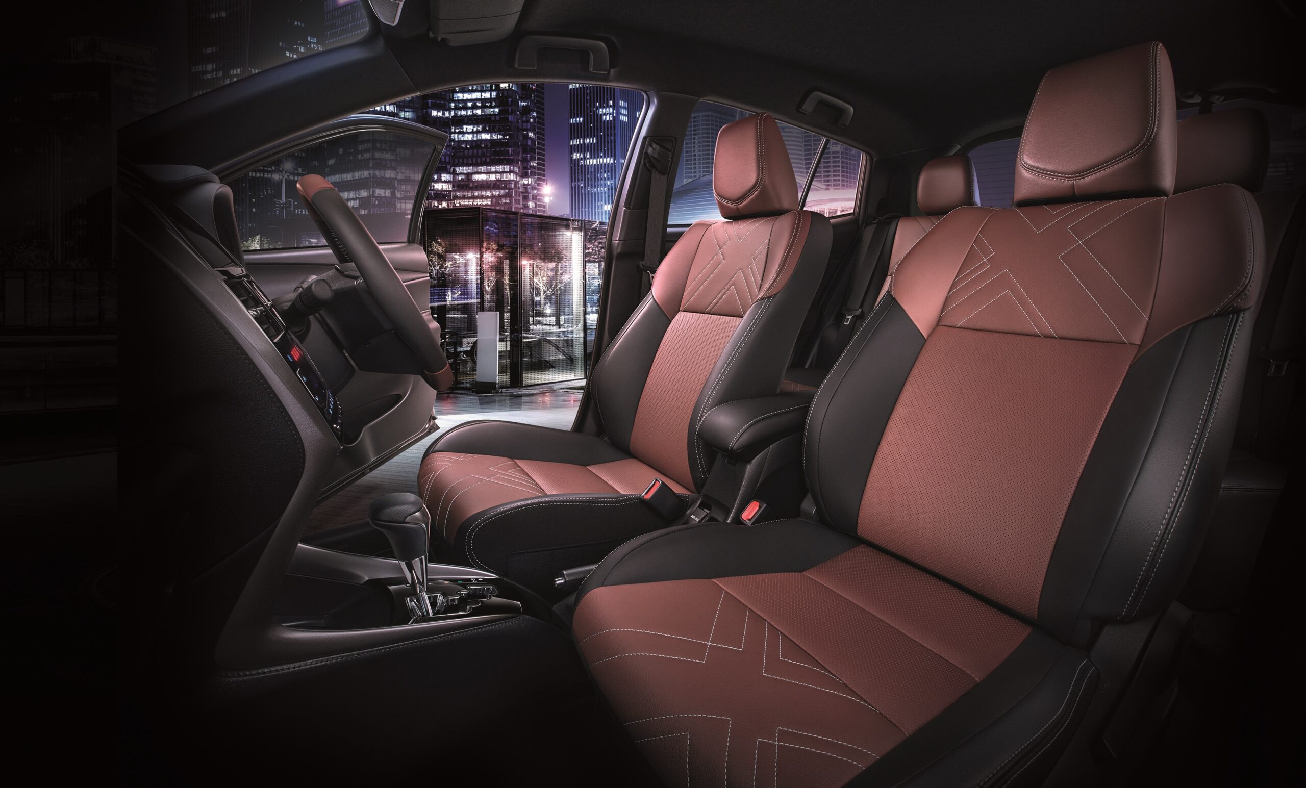 – เบาะนั่งด้านหน้าและหลังสีทูโทนแดง Terra Rossa และสีดำ พร้อมเดินด้ายลายพิเศษ