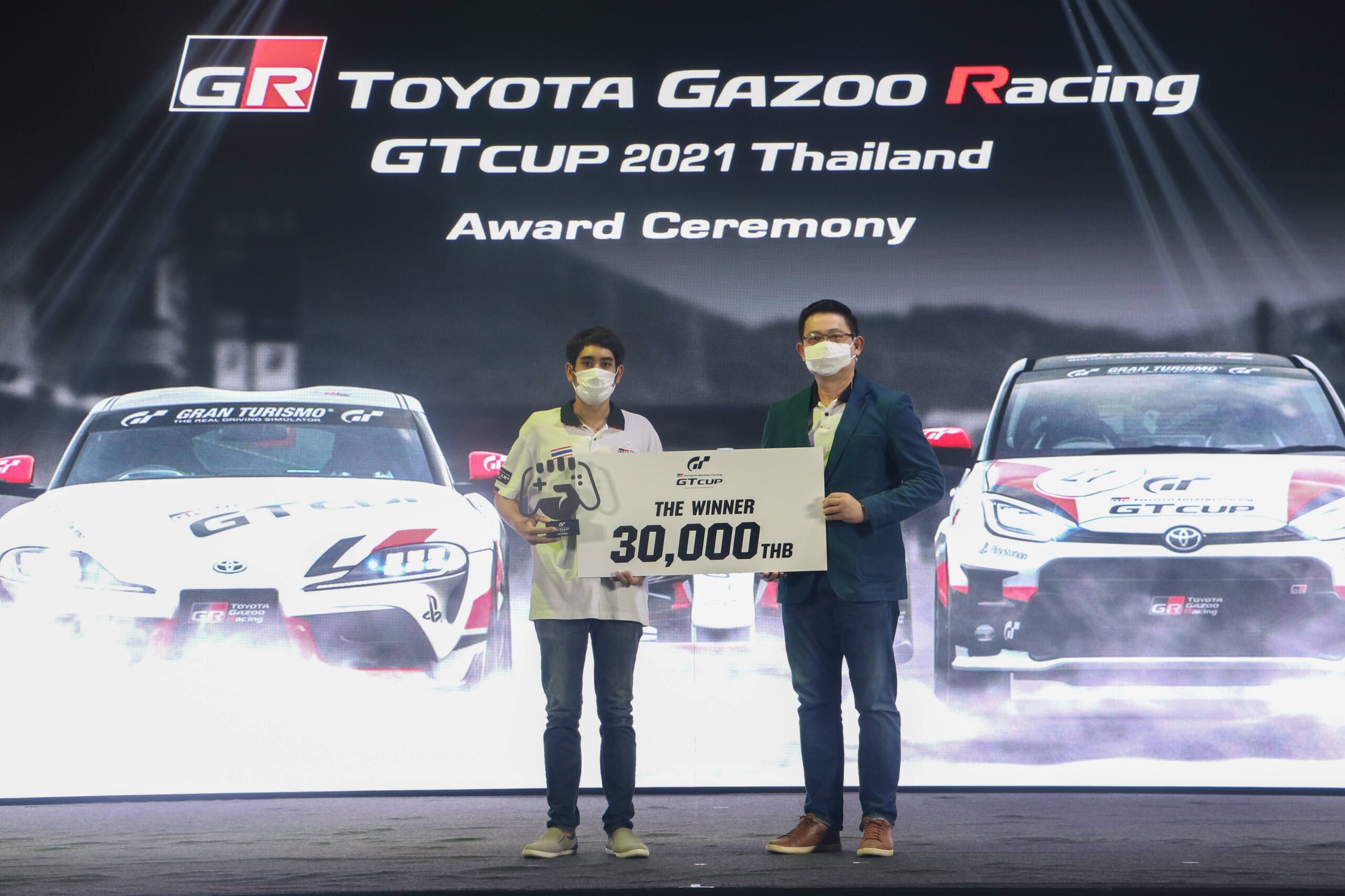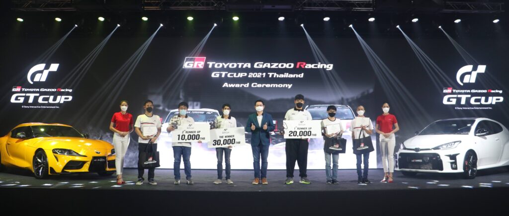 “ในวันนี้โตโยต้าได้ต่อยอดความสำเร็จสู่วงการ e-Motorsports เพื่อตอบรับกับการเปลี่ยนแปลงของเทรนด์โลก พร้อมเปิดโอกาสให้คนรุ่นใหม่ ผู้มีความชื่นชอบในกีฬาแข่งรถ ได้สัมผัสประสบการณ์อันตื่นเต้น เร้าใจ กับความท้าทายใหม่ๆ ในโลกเสมือนจริง ภายใต้กิจกรรม e-Motorsports ของ ผ่านการแข่งขัน Toyota Gazoo Racing GT Cup 2021 ในเกม Gran Turismo Sport บน Play Station 4 และ 5 ด้วยการทดสอบสมรรถนะ ความสมดุล และความคล่องตัวของรถ Toyota GR ในหลากหลายรุ่น อาทิ รถสปอร์ตในตำนาน Toyota GR Supra หรือ รถสปอร์ตสายพันธุ์แชมป์แรลลี่โลก Toyota GR Yaris จนสามารถหานักแข่งที่ทำคะแนนสะสมได้สูงสุด 3 คน เป็นตัวแทนประเทศไทย เข้าร่วมการแข่งขันระดับ Asia pacific ในเดือนตุลาคม พร้อมรับเงินรางวัลพิเศษ รวมมูลค่าทั้งสิ้นกว่า 60,000 บาท”