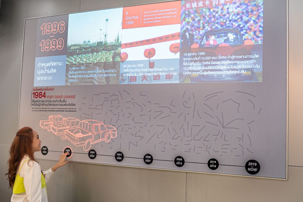 โซนนี้ประกอบด้วย Interactive Wall ขนาด 2.5 x 1.5 เมตร ที่ถ่ายทอดเรื่องราวและประวัติความเป็นมาของ เกรท วอลล์ มอเตอร์ ตั้งแต่การเริ่มก่อตั้งในปี ค.ศ.1984 ไปจนถึงวิวัฒนาการของแบรนด์และผลิตภัณฑ์ต่างๆ ทั้งเรื่องราวของขั้นตอนและรายละเอียดการผลิตรถยนต์ที่มีคุณภาพและมีความปลอดภัยสูง รวมไปถึงเส้นทางความสำเร็จของแบรนด์ที่ได้มีการพัฒนาอย่างต่อเนื่อง เพื่อให้ผู้ที่มาเยี่ยมชมได้ทำความรู้จักและเรียนรู้เกี่ยวกับ เกรท วอลล์ มอเตอร์ ได้ดีมากยิ่งขึ้น