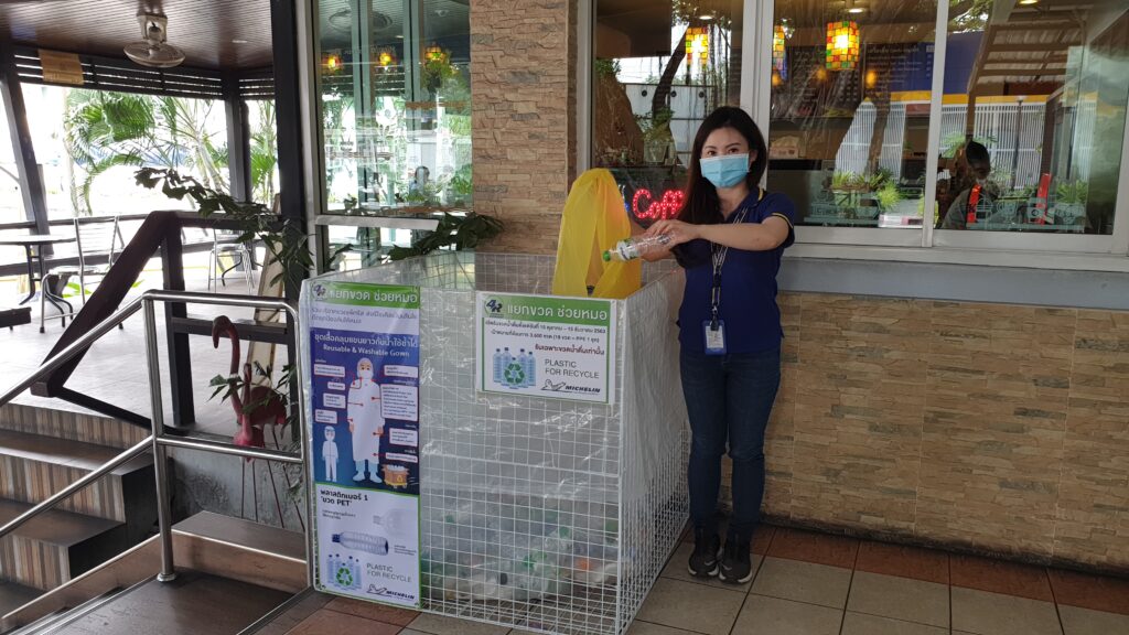 ด้วยจุดยืนองค์กรในเรื่อง “เศรษฐกิจหมุนเวียน” (Circular Economy) ซึ่งเน้นการใช้ทรัพยากรอย่างคุ้มค่าสูงสุดและลดผลกระทบด้านสิ่งแวดล้อมให้อยู่ในระดับต่ำที่สุด อันเป็นหนึ่งในแนวทางเพื่อขับเคลื่อนวิสัยทัศน์ “ความยั่งยืนทุกด้าน” (All Sustainable) ให้เป็นจริง ล่าสุด ‘มิชลิน’ ได้จับมือเครือข่ายสังคมลดขยะ Less Plastic Thailand สนับสนุนโครงการ “แยกขวด ช่วยหมอ” รณรงค์ให้พนักงานร่วมบริจาคขวดพลาสติก PET เพื่อใช้ผลิตเป็นชุด PPE มอบให้แก่บุคลากรทางการแพทย์ในพื้นที่สีแดงเข้ม ภายใต้โครงการดังกล่าวซึ่งเริ่มดำเนินการตั้งแต่ปี 2563 จนถึงปัจจุบัน มิชลินได้ร่วมสมทบทุนในการผลิตชุด PPE จากเส้นใยพลาสติกเป็นเงินกว่า 300,000 บาท และบริจาคขวดพลาสติก PPE รวม 192 กิโลกรัม ซึ่งสามารถนำไปผลิตเป็นชุด PPE ได้ทั้งสิ้น 1,300 ชุด