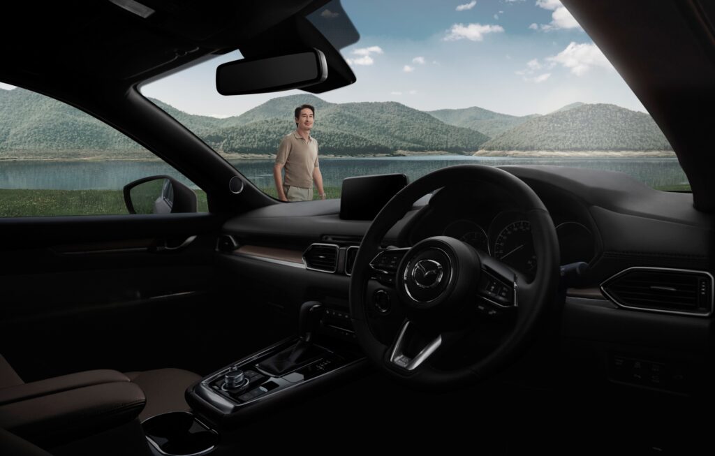 การออกแบบภายนอกและภายใน ยังคงพิถีพิถันในทุกรายละเอียดดุจงานศิลปะชิ้นเอก ภายใต้แนวคิด Kodo: Soul of Motion ถ่ายทอดความงามที่อยู่เหนือกาลเวลา มีเอกลักษณ์เฉพาะตัว หรูหรา ภายใต้คอนเซ็ปต์ “Less is More” ที่เน้นความเรียบง่ายแต่งดงาม ห้องโดยสารตกแต่งด้วยโทนสีเข้ม ใช้วัสดุแบบ Real Wood และตกแต่งด้วยสีเงินซาตินโครม ผสานกับเบาะหนัง Nappa* สีแดง Deep Red รองรับการเชื่อมต่อกับแอพพลิเคชั่นบนสมาร์ทโฟนผ่านระบบ Mazda Connect ที่มาพร้อม Apple CarPlay และ Android Auto โดยแสดงข้อมูลผ่านหน้าจอสี Center Display แบบทัชสกรีนใหม่ ขนาด 8 นิ้ว ควบคุมด้วยปุ่มควบคุมอัจฉริยะ Center Commander ที่หรูหราและสะดวกสบายต่อการใช้งาน พร้อมเพิ่มความสุนทรีย์ภายในห้องโดยสารด้วยระบบเสียงคุณภาพ Bose® รอบทิศทาง พร้อมลำโพง 10 ตำแหน่ง
