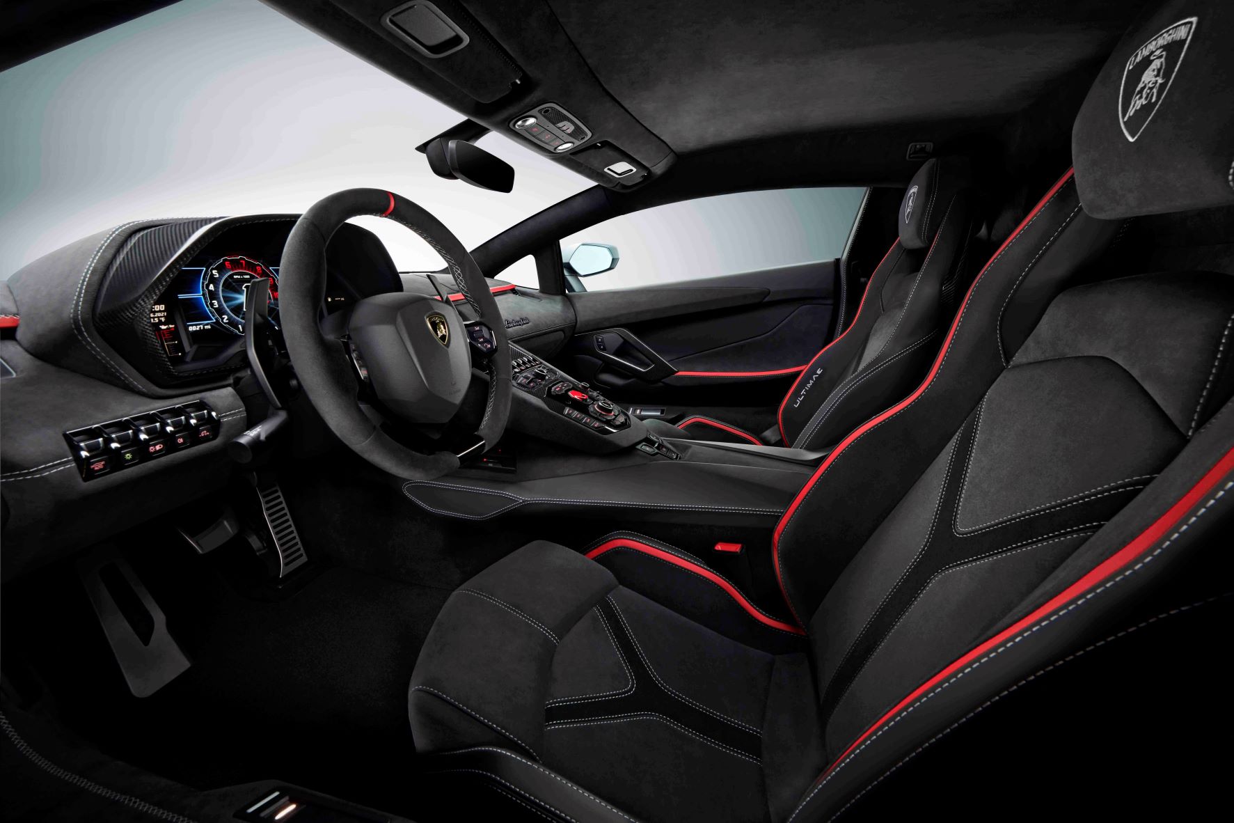 ภายในห้องโดยสารของ Ultimae นั้นครบครันด้วยจอ TFT ที่มีรายละเอียดการขับขี่ครบถ้วนและสามารถควบคุมระบบต่างๆของรถได้โดยไม่ต้องละมือจากพวงมาลัยพร้อมระบบ Apple CarPlay เป็นมาตรฐาน มากไปกว่านั้นเจ้าของรถยังสามารถเลือกใส่ออพชั่นอย่าง Lamborghini telemetry ที่ช่วยให้การวิเคราะห์การขับขี่เมื่อลงสนามเป็นเรื่องง่ายอีกด้วย