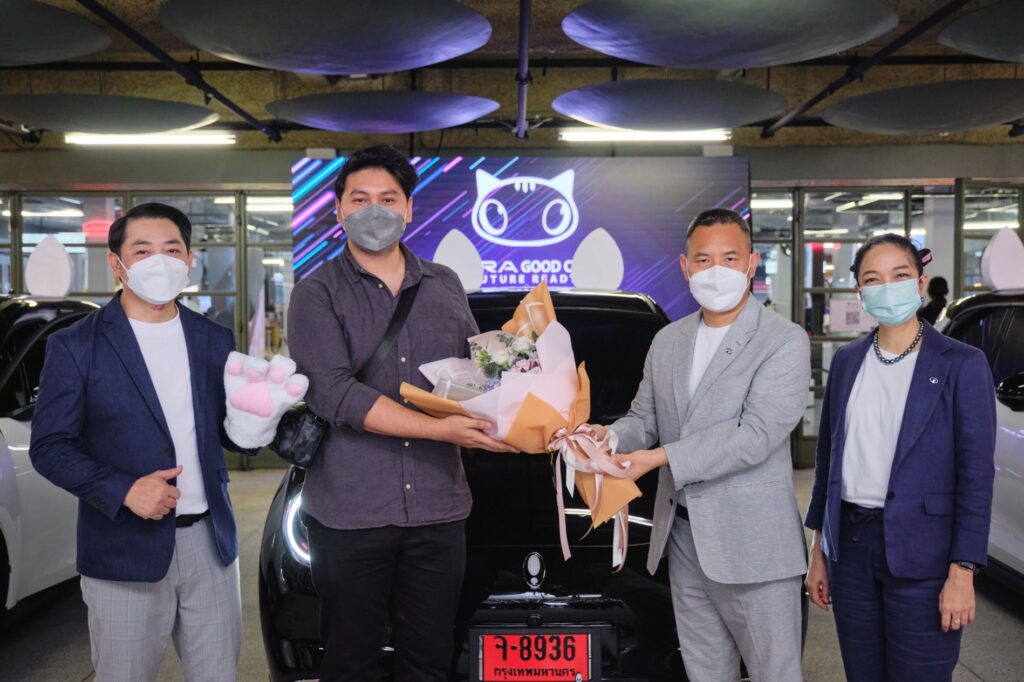 เกรท วอลล์ มอเตอร์ จัดพิธีส่งมอบ ORA Good Cat รถยนต์พลังงานไฟฟ้า 100% ให้แก่ลูกค้าชาวไทยกลุ่มแรก ณ ลิโด้ คอนเนค สยามสแควร์ โดยมีทีมผู้บริหารระดับสูงนำโดย นาย สตีเว่น หวัง รองประธาน เกรท วอลล์ มอเตอร์ ภูมิภาคอาเซียนและประเทศไทย และนายณรงค์ สีตลายน กรรมการผู้จัดการ เกรท วอลล์ มอเตอร์ ประเทศไทย ร่วมแสดงความยินดีและ