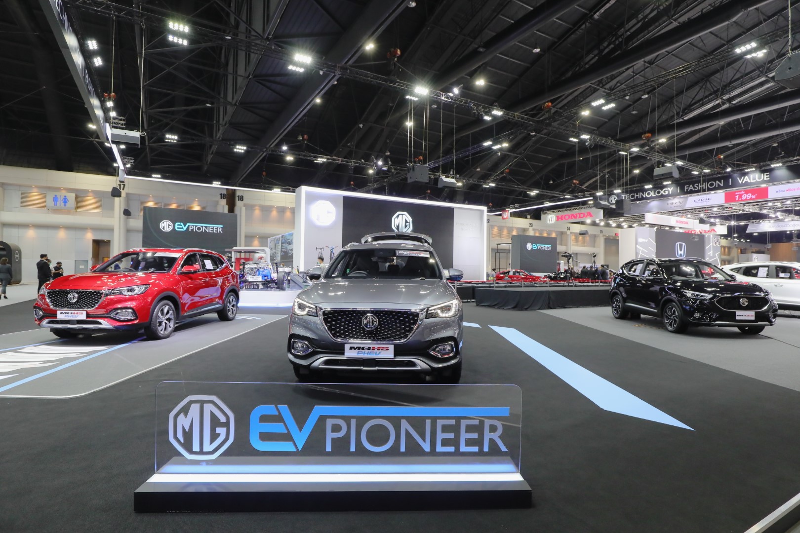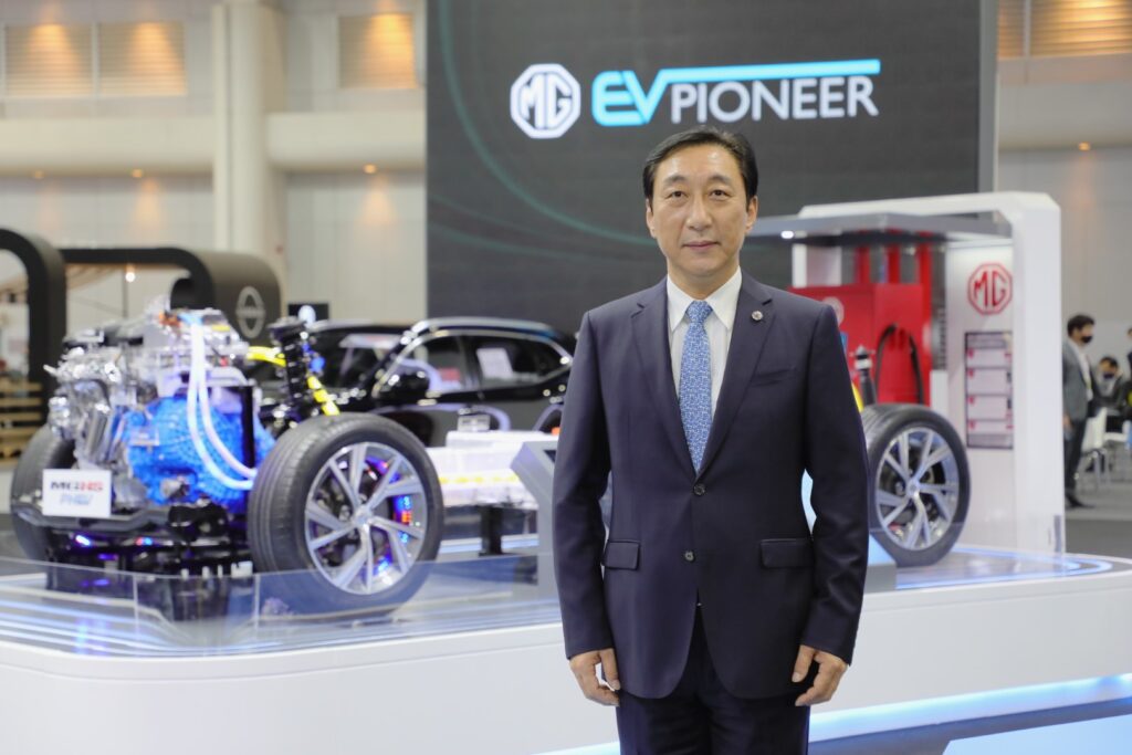 นายพงษ์ศักดิ์ กล่าวเสริมว่า “ปัจจุบันคำว่า EV มักถูกนำไปใช้ร่วมกับคำอื่นๆ จนทำให้เกิดความหมายที่ผิดเพี้ยนไปจากเดิม ดังนั้น ถ้าหากเราพูดถึง EV นั่นต้องหมายถึงรถยนต์พลังงานไฟฟ้า 100% เท่านั้น โดยเอ็มจีได้เริ่มนำรถยนต์ไฟฟ้าต้นแบบ MG E-Motion มาจัดแสดงในงาน Motor Expo แห่งนี้ในปี 2018 และนับจนถึงปัจจุบันเราได้เปิดตัวรถยนต์พลังงานไฟฟ้ารวม 2 รุ่น ได้แก่ MG ZS EV และ MG EP รถยนต์พลังงานไฟฟ้า 100%ในรูปแบบของ SUV และ Station Wagon ด้วยรูปหลักที่โดดเด่น และสมรรถนะที่ดีเยี่ยม จนทำให้เอ็มจีสามารถครองส่วนแบ่งตลาดรถยนต์พลังงานไฟฟ้าในประเทศไทยได้มากกว่า 90% ตั้งแต่ปี 2019 จนถึงปัจจุบันทั้งนี้ เพื่อตอกย้ำภาพการเป็นผู้บุกเบิกรถยนต์พลังงานไฟฟ้าของเอ็มจี ในงาน Motor Expo 2021 ปีนี้