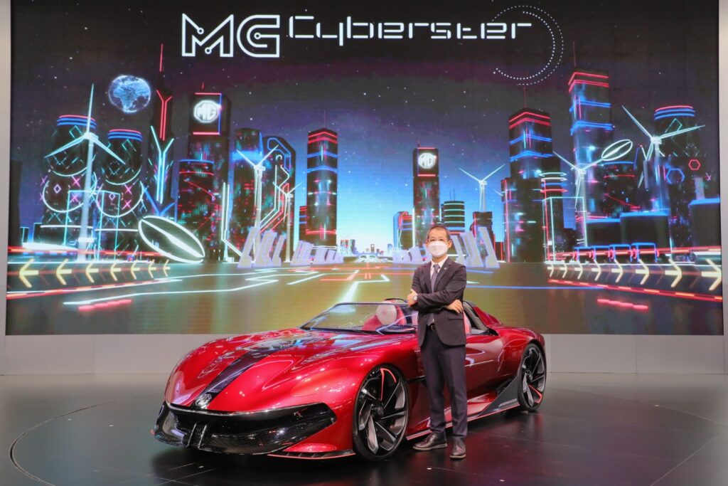 เอ็มจีได้แนะนำ MG Cyberster รถยนต์ต้นแบบพลังงานไฟฟ้า 100% สไตล์สปอร์ตแบบ 2 ที่นั่ง ที่ได้รับแรงบันดาลใจมาจาก MGB Roadster รถสปอร์ตในตำนานของเอ็มจี ซึ่งรถยนต์คันนี้จะไม่ใช่เพียงแค่รถยนต์ต้นแบบแต่เอ็มจีกำลังจะปรับปรุงและพัฒนาให้กลายเป็นรถยนต์พลังงานไฟฟ้าที่ใช้งานได้จริงในอนาคตอันใกล้นี้”