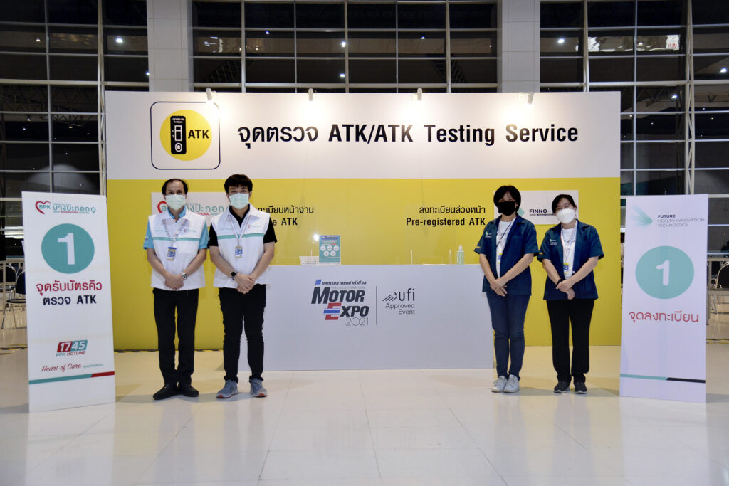 งาน “มหกรรมยานยนต์ ครั้งที่ 38” จัดมาตรการป้องกันการระบาดของ COVID-19 โดยผู้ชมงานต้องได้รับวัคซีนแล้ว 2 เข็ม หรือผ่านการตรวจ RT-PCR / ATK ภายใน 72 ชั่วโมง มิเช่นนั้นต้องรับการตรวจ ATK หน้างาน ซึ่งได้รับการสนับสนุนจากโรงพยาบาลบางประกอก 9 และ FINNO-HEALTH ค่าใช้จ่ายเพียง 99 บาท/ท่าน