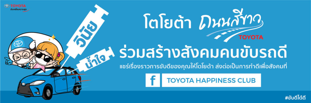 โตโยต้า ขอเชิญชวนทุกท่านมาเป็นส่วนหนึ่งในการร่วมสร้างสังคมคนขับรถดี ผ่านการรณรงค์และประชาสัมพันธ์ การขับขี่อย่างปลอดภัย มีวินัย เคารพกฎจราจร รวมถึงร่วมแบ่งปันน้ำใจให้กับเพื่อนร่วมทาง