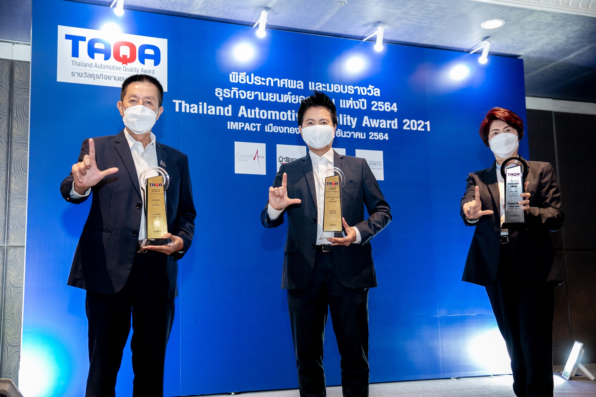 รางวัลในปีนี้ถือเป็นอีกหนึ่งความภาคภูมิใจในการต่อยอดความสำเร็จของ “ฟิล์มกรองแสงลามิน่า” ที่เคยได้รับรางวัล TAQA Platinum Award อย่างยิ่งใหญ่และรับรางวัลต่อเนื่องในปีที่ผ่านมา ปีนี้ยังสามารถคว้ารางวัลฟิล์มกรองแสงยอดนิยมครองใจมหาชนสูงสุดในเมืองไทย ทั้งในด้านการพัฒนาผลิตภัณฑ์และการให้บริการที่ยอดเยี่ยมแก่ผู้บริโภค และได้รับการยอมรับให้เป็นฟิล์มกรองแสงคุณภาพอันดับ 1