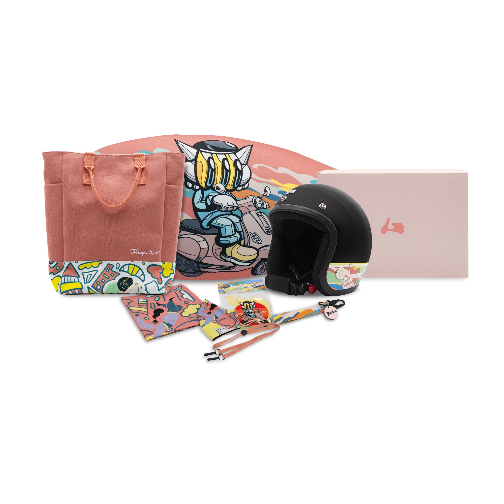 แบรนด์ดัง ๆ มาแล้วมากมาย มาร่วมออกแบบพรีเมี่ยมคอลเลคชั่นให้กับสกู๊ตเตอร์ Vespa LX 125 i-Get (PINK ROSA) ที่ประกอบไปด้วย หมวกกันน็อก ผ้าคลุมเบาะ พวงกุญแจ กระเป๋าผ้าพันคอ