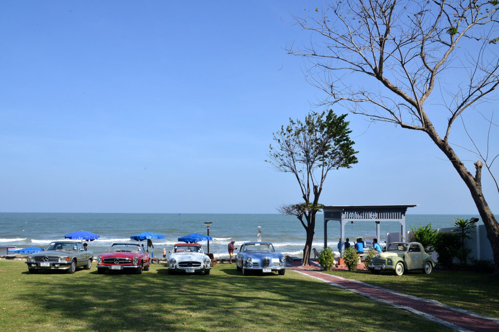 สู่จุดหมายแรกคือ เข้าชมโครงการต่างๆ ในศูนย์ศึกษาการพัฒนาห้วยทรายอันเนื่องมาจากพระราชดำริ โดยมีหอการค้าจังหวัดเพชรบุรี จัดเลี้ยงต้อนรับขบวนคาราวาน โอกาสนี้ สมาคมฯ ได้มอบทุนการศึกษาให้นักเรียน โรงเรียนราชประชานุเคราะห์ 47 หลังจากนั้น มุ่งสู่โรงแรม อวานี พลัส หัวหิน รีสอร์ท ร่วมงานสังสรรค์พูดคุยกับเจ้าของรถโบราณในหัวข้อ “นี่แหละรถคันรัก” ณ ริมชายหาด