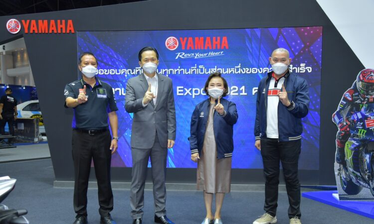 นายพงศธร เอื้อมงคลชัย รองประธานกรรมการบริหาร นางสาวจินตนา อุดมทรัพย์ ที่ปรึกษาคณะบริหาร และนายภาณุพล กิตติคำรณ รองผู้จัดการใหญ่ด้านการขายและการตลาด บริษัท ไทยยามาฮ่ามอเตอร์ จำกัด ถ่ายภาพร่วมกับร้านผู้จำหน่ายรถจักรยานยนต์ยามาฮ่า ในเขตกรุงเทพฯ และปริมณฑล ในโอกาสฉลองปิดบูธ YAMAHA SENSE OF CONNECTION อย่างเป็นทางการ ในงานมหกรรมยานยนต์ ครั้งที่ 38 ในระหว่างวันที่ 1-12 ธันวาคม 2564 ที่ผ่านมาก โดการเข้าร่วมงานในครั้งนี้ ยามาฮ่าจัดรูปแบบการจองรถผ่านระบบออนไลน์ เพื่อตอบสนองมาตรการการป้องกันการแพร่ระบาดของโรคโควิด-19 อย่างเคร่งครัดท่ามกลางลูกค้ามากมายที่ให้ความสนใจลงชื่อจองรถจักรยานยนต์ยามาฮ่ากันอย่างคึกคักรวมทั้งสิ้น 1,119 คัน โดยแบ่งเป็นรถ Big Bike จำนวน 109 คัน และรถ Standard Bike จำนวน 1,010 คัน ปิดท้ายปลายปีอย่างสุดปัง