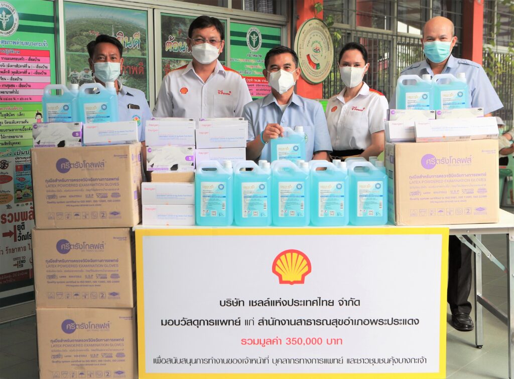 บริษัท เชลล์แห่งประเทศไทย จำกัด นำโดย นายองอาจพันธุ์ โพธิ์ศรี กรรมการบริหารฝ่ายปฏิบัติการธุรกิจจัดหา จัดเก็บ และจัดจ่าย และ ดร. ศรีรัชต์ ธนะรัชต์ กรรมการบริหารฝ่ายรัฐกิจและองค์กรสัมพันธ์ มอบวัสดุการแพทย์ ซึ่งประกอบด้วยชุดตรวจหาแอนติเจนด้วยตนเอง Antigen Test Kit จำนวน 880 ชิ้น ถุงมือทางการแพทย์ จำนวน 1,000 กล่อง และแอลกอฮอลล์ฆ่าเชื้อสำหรับทำความสะอาดมือ ขนาด 5 ลิตร จำนวน 350 แกลลอน รวมมูลค่า 350,000 บาท แก่สำนักงานสาธารณสุขอำเภอพระประแดง เพื่อสนับสนุนการทำงานของเจ้าหน้าที่ และบุคลากรทางการแพทย์ ของโรงพยาบาลส่งเสริมสุขภาพตำบลในคุ้งบางกะเจ้าทั้ง 7 แห่ง ที่อยู่ภายใต้การดูแลของสำนักงานสาธารณสุขอำเภอพระประแดง สำหรับนำไปใช้ในกิจการทางการแพทย์และดูแลสุขภาพอนามัยให้ชุมชนคุ้งบางกะเจ้าปลอดภัยจากการระบาดของโควิด-19 เชลล์ในฐานะผู้นำธุรกิจพลังงานอยู่เคียงข้างชาวไทยมาอย่างยาวนาน ตระหนักถึงความสำคัญในการส่งเสริมให้สังคมไทยปลอดภัยและห่างไกลโรคระบาด ด้วยกลยุทธ์ Powering Progress ผสานความร่วมมือกับพันธมิตรภาครัฐและเอกชนอย่างต่อเนื่อง พร้อมอยู่เคียงข้างเป็นพันธมิตรที่ไว้ใจได้ของสังคมไทยในทุกสถานการณ์