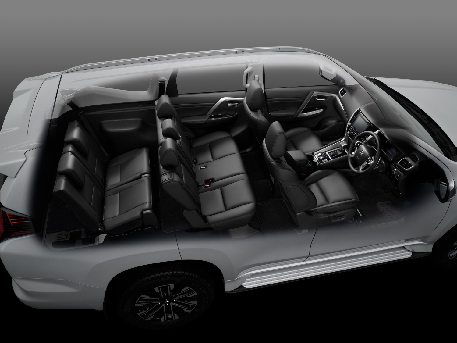 มิตซูบิชิ ปาเจโร สปอร์ต ‘มีเอกลักษณ์การดีไซน์ที่โดดเด่น’ สะกดทุกสายตาโดดเด่นทุกมุมมองด้วยกระจังหน้าแบบ ‘Advanced Dynamic Shield’ เส้นสายการออกแบบมีความทันสมัยจากภายนอกจรดภายใน ห้องโดยสารกว้างขวางและมีความหรูหรา ตกแต่งด้วยวัสดุบุนุ่มที่ช่วยเพิ่มระดับความพรีเมียม สะดวกสบายยิ่งขึ้นในทุกการเดินทางด้วยช่องจ่ายไฟฟ้าขนาด 220V พร้อมที่ชาร์จแบตเตอรี่โทรศัพท์มือถือแบบไร้สาย มีระบบฟอกอากาศ และระบบปรับอากาศสำหรับเบาะนั่งแถวที่ 2 และ 3 ผู้โดยสารตอนหลังยังสามารถเพลิดเพลินกับระบบความบันเทิงตลอดการเดินทางด้วยจอภาพขนาด 12.1 นิ้ว ติดตั้งบนเพดานรถ พร้อมรีโมทคอนโทรล รองรับการเชื่อมต่อผ่าน USB และสมาร์ทโฟนผ่าน HDMI