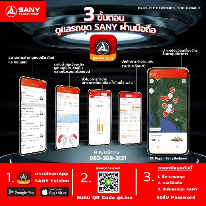 นอกจากนี้ ในส่วนของโชว์รูมพร้อมศูนย์บริการก็จะมีการขยายให้ครอบคลุมมากยิ่งขึ้น จากเดิมที่มีอยู่ 10 แห่ง ปีนี้จะเพิ่มอีก 10 แห่ง ในจังหวัด สระบุรี, สกลนคร, จันทบุรี, นครสวรรค์, เชียงราย, เชียงใหม่, และอุบลราชธานี พร้อมกันนี้ ยังได้ลงทุนเพิ่มอีก 1,000 ล้านบาท สำหรับเพิ่มสต็อกอะไหล่ เพื่อให้ครอบคลุมการบริการ ตาม“มาตรฐานการบริการหลังการขายของซานี่ไทยยนต์ 1137” คือ Call Center ติดต่อกลับภายใน 1 ช.ม. /ฝ่ายบริการไปถึงหน้างาน 1 วัน / งานบริการทั่วไป จบงานภายใน 3 วัน และ งานบริการพิเศษ จบงานภายใน 7 วัน มั่นใจงานบริการหลังการขาย-อะไหล่แก้ไขปัญหาได้เสร็จทุกเคส สะดวกยิ่งขึ้นด้วย SANY E-vision Application on Mobile ให้ลูกค้าดูแลรถขุดซานี่ง่ายๆ ผ่านมือถือ ทั้งนี้ เพื่อสร้างมาตรฐานการบริการด้วยการการันตี คุณภาพ มาตรฐาน การบริการเป็นเลิศ