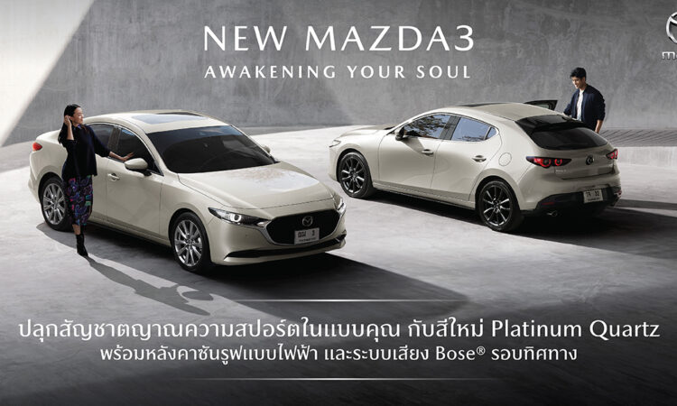 นายธีร์ เพิ่มพงศ์พันธ์ รองประธานบริหารอาวุโส บริษัท มาสด้า เซลส์ (ประเทศไทย) จำกัด กล่าวว่า การแนะนำรถยนต์นั่ง New Mazda3 ในครั้งนี้ มาพร้อมคอนเซ็ปต์ใหม่ “AWAKENING YOUR SOUL” เป็นยนตรกรรมสปอร์ตพรีเมี่ยมใหม่ ที่ปลุกสัญชาตญาณความสปอร์ตในแบบคุณให้มีชีวิต เติมเต็มเอกลักษณ์ที่โดดเด่นในแบบที่ไม่ซ้ำใคร ด้วยดีไซน์ที่สะกดสายตาในทุกมุมมอง ดีไซน์ภายนอกที่ยังคงความสง่างาม สปอร์ตพรีเมี่ยม ภายใต้แนวคิด Kodo: Soul of Motion ที่ถูกพัฒนาขึ้นไปอีกระดับ ด้วยการลดทอนรายละเอียดที่ไม่จำเป็นลง แต่คงไว้ซึ่งความเรียบหรู ทรงพลัง ดุจการเติมจิตวิญญาณให้ยนตรกรรมมีชีวิต ซึ่งได้รับแรงบันดาลใจจากสุนทรียศาสตร์แบบญี่ปุ่น ภายใต้คอนเซ็ปต์ “Less is More” ที่เน้นความเรียบง่ายแต่งดงาม ในรุ่นฟาสท์แบค 5 ประตู ยังคงแบบอย่างการดีไซน์อันมีเอกลักษณ์เสมือนงานศิลปะชิ้นเอก โดดเด่นด้วยความสปอร์ตในทุกรายละเอียด เน้นความเรียบง่ายแต่ทรงพลัง ในขณะที่รุ่นซีดาน 4 ประตู ให้ความหรูหรา ปราดเปรียวอย่างมีสไตล์ แต่ยังคงไว้ซึ่งความภูมิฐานสง่างามในทุกรายละเอียด พร้อมสะกดทุกสายตาให้เหลียวมอง