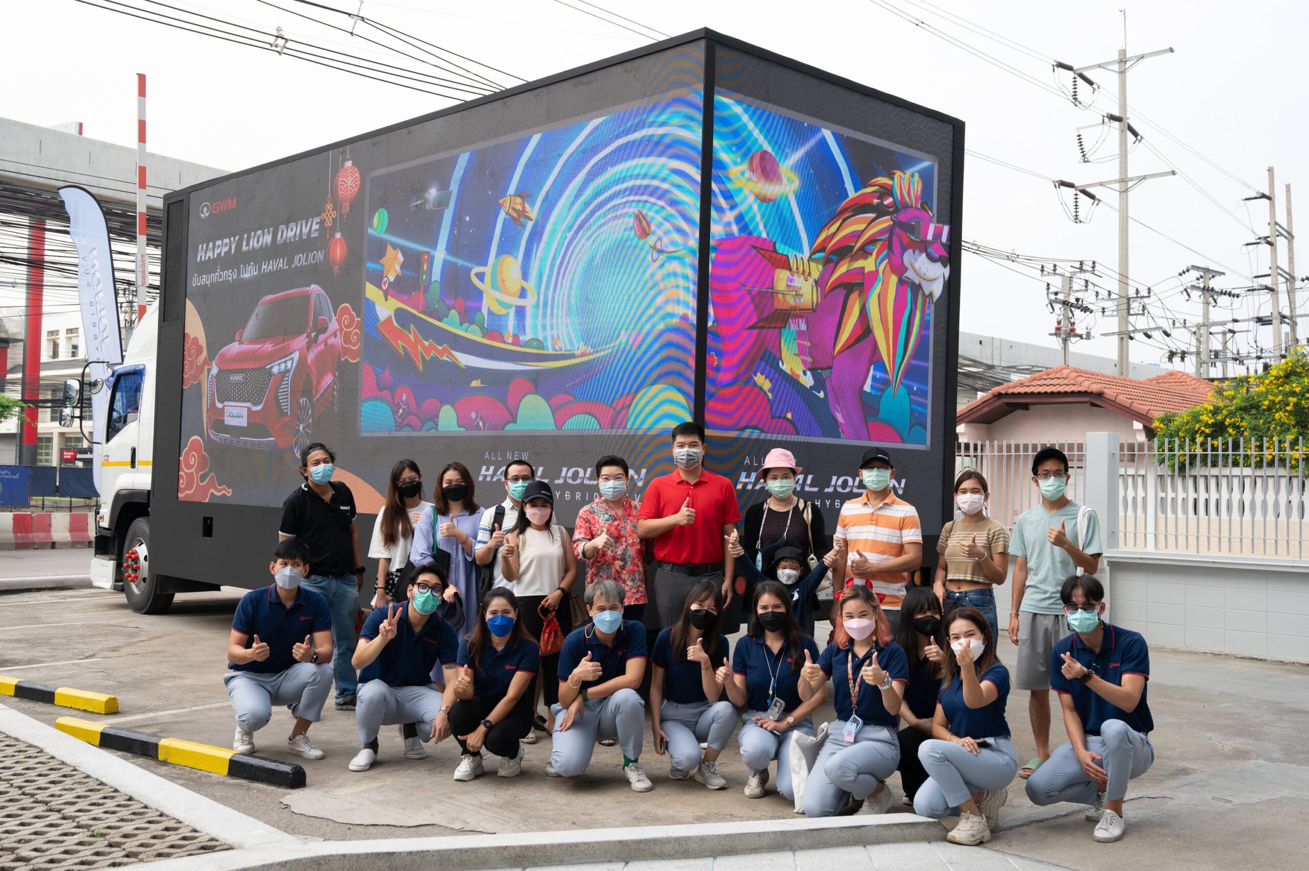 กิจกรรม “HAPPY LION DRIVE” ขับสนุกทั่วกรุงไปกับ HAVAL JOLION จัดขึ้นเพื่อให้ลูกค้าและผู้บริโภคที่สนใจได้ร่วมทดลองขับและสัมผัสประสบการณ์การขับขี่อัจฉริยะที่ทั้งสนุกและล้ำสมัยจาก All New HAVAL JOLION Hybrid SUV ภายใต้ธีมขบวนแห่สิงโต ที่ไม่เพียงแต่งแต้มสีสันให้กับเทศกาลตรุษจีนเท่านั้น แต่ยังสร้างรอยยิ้มและมอบความสุขให้กับผู้เข้าร่วมกิจกรรมรวมถึงผู้พบเห็นตลอดเส้นทาง โดยกิจกรรมแบ่งออกเป็น 4 วัน 4 เส้นทาง ได้แก่ เส้นทางโซนบางนา-ตราด โซนราชพฤกษ์ โซนรัชดาภิเษก และโซนแจ้งวัฒนะ ในระหว่างวันยังมีเวิร์คช็อปประดิษฐ์ภาพแกะสลักจากกระดาษเพื่อเสริมมงคลปีเสือให้คณะผู้ร่วมงานได้ร่วมสนุก พร้อมทั้งฝึกฝีมือและสมาธิกันอีกด้วย ซึ่งกิจกรรมทั้ง 4 วัน ได้รับความสนใจลูกค้าและผู้บริโภคจำนวนมาก โดยมีผู้ลงทะเบียนเข้าร่วมกิจกรรมทั้งสิ้นกว่า 260 คน