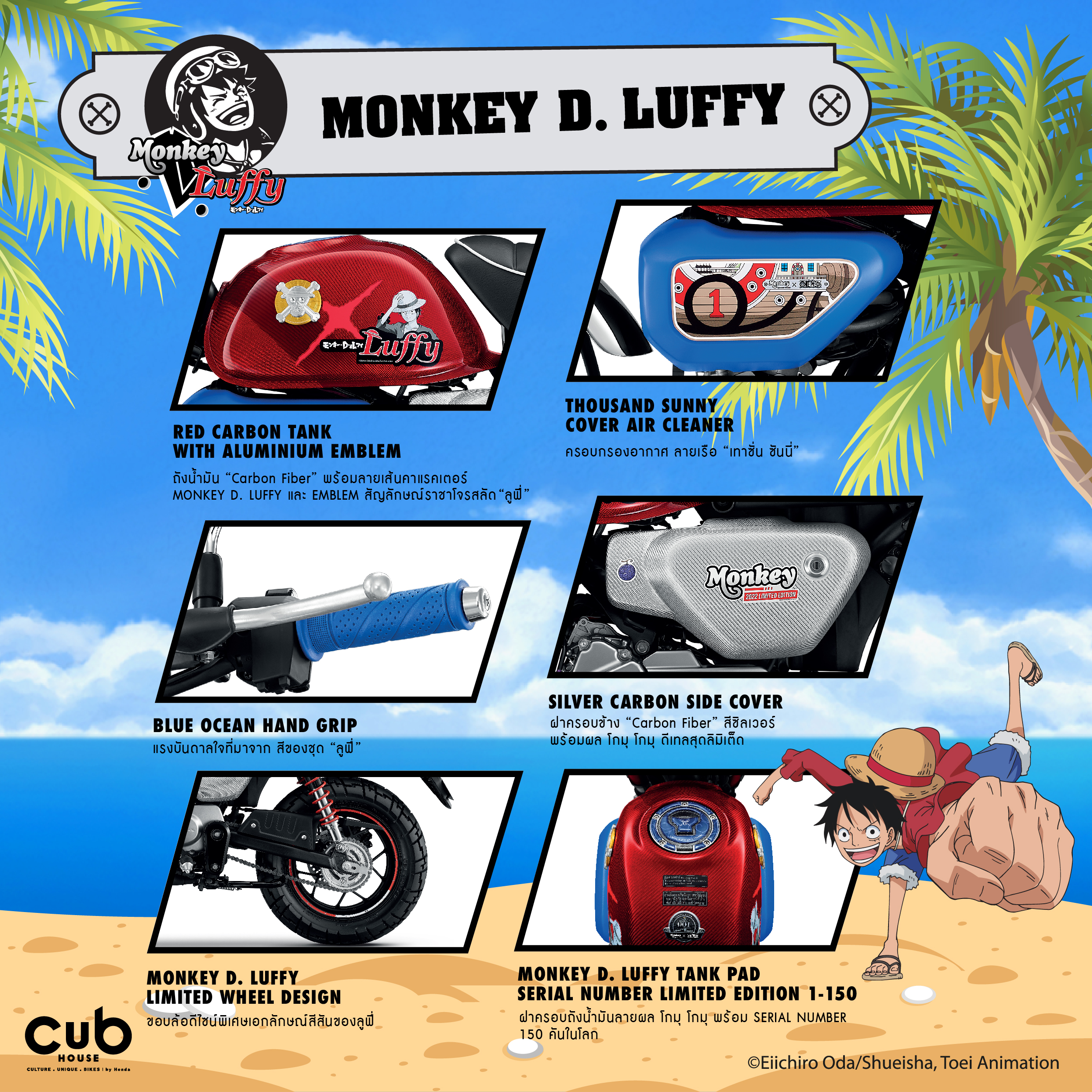 “ล่าสุด เราพร้อมที่จะส่งมอบประสบการณ์ความสนุกครั้งใหม่ ด้วยการเปิดตัว Monkey x One Piece Limited Edition ที่มีความพิเศษสุดเอ็กซ์คลูซีฟ ผลิตจำนวนจำกัด 300 คัน โดยถ่ายทอดคาแรคเตอร์ความสนุกผ่าน 2 ตัวเอกในวันพีช ประกอบด้วย Honda Monkey Monkey D.Luffy Edition และ Honda Monkey Tony Tony Chopper Edition นอกจากนี้ยังได้รับเกียรติจาก อาจารย์ เออิจิโระ โอดะ ผู้เขียนการ์ตูน วันพีช มาร่วมออกแบบโลโก้ Honda Monkey D.Luffy ให้กับ Monkey x One Piece Limited Edition ด้วยตัวเอง”