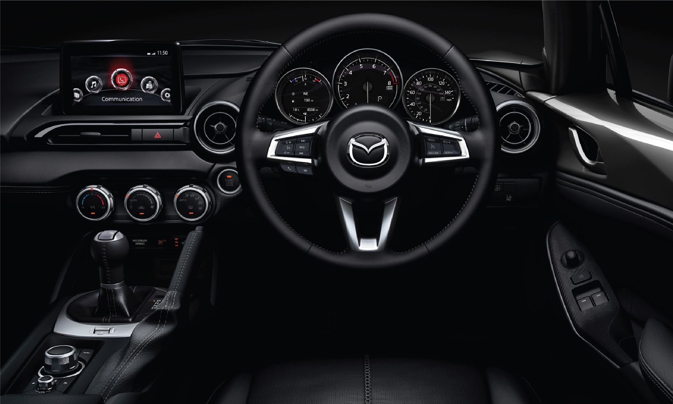 การออกแบบภายนอกของ New Mazda MX-5 ยังคงมีความสปอร์ต ทันสมัย มาพร้อมเทคโนโลยีไฟหน้าแบบ LED Projector และไฟส่องสว่างสำหรับการขับขี่เวลากลางวัน Daytime Running Lamp ตกแต่งด้วยล้ออัลลอยขนาด 17 นิ้ว สีดำเมทัลลิค พร้อมคิ้วบันไดกันรอยสเตนเลส ในขณะที่ภายในห้องโดยสารยังคงคัดสรรเลือกใช้เฉพาะวัสดุคุณภาพสูง และประณีตทุกจุดสัมผัส ไม่ว่าจะเป็น เบาะหนัง Perforated และเดินตะเข็บด้วยด้ายเย็บสีเทา ที่บ่งบอกถึงความพรีเมี่ยม พร้อมยังรองรับการใช้งาน Apple CarPlay พร้อม Mazda Connect โดยแสดงข้อมูลผ่านหน้าจอสี Center Display ขนาด 7 นิ้ว ช่วยอำนวยความสะดวกในทุกการติดต่อ เพิ่มสุนทรียภาพในการขับขี่ด้วยระบบเสียงคุณภาพ Bose® รอบทิศทาง พร้อมลำโพง 9 ตำแหน่ง