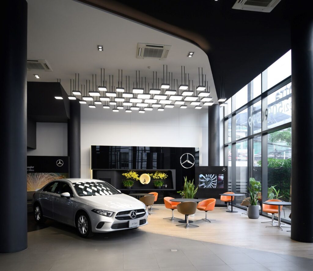 เมื่อตลาดดีลเลอร์รถหรูมีมูลค่าและ การแข่งขันที่สูงขึ้นทุกวัน การเตรียมความพร้อมก่อนย่อมได้เปรียบคู่แข่งเสมอ “เราตระหนักถึงความสะดวกสบายและการรองรับเพื่อบริการลูกค้าให้ได้ตอบโจทย์มากที่สุด คุณพ่อจึงดำริให้ขยายโชว์รูมและศูนย์บริการแห่งใหม่ ให้ครบวงจร เข้าถึงบริการด้วยเทคโนโลยีล้ำสมัย และพื้นที่ประโยชน์ใช้สอยที่ใช้งานได้จริง จึงเป็นที่มาในการเพิ่มศูนย์ฯจากทองหล่อสู่รามอินทรา และ ความพิเศษของโชว์รูมนี้คือ สร้างตามคอนเซ็ปต์ใหม่ ของ Mercedes-Benz ทั่วโลก ที่ต้องการให้ทุกโชว์รูมมีมาตรฐานใหม่เดียวกัน ที่ทันสมัย นำระบบดิจิทัลเข้ามาอำนวยความสะดวกสบายให้กับลูกค้าที่มาใช้บริการ ซึ่งปัจจุบันสร้างเสร็จสมบูรณ์และใช้รองรับลูกค้าใหม่และลูกค้าเดิมที่ตามมาจากทองหล่ออีกกว่า80% จากแรกเริ่มเรามีพื้นที่ราว 2,000 ตรม. ปัจจุบันเราได้ขยายกลายมาเป็น 4,000 ตรม. รวมถึงเปิดพื้นที่รองรับการทำกิจกรรมส่งเสริมการขายต่างๆ ที่ตรงใจลูกค้าเรา หรือกับการ Collaboration กับผู้ประกอบการอื่นๆที่น่าสนใจ ที่กำลังนำเทรนด์ เพื่อดึงดูดให้ลูกค้ามาใช้ศูนย์บริการของเราประหนึ่งคอมมูนิตี้ ที่ครบวงจรทุกส่วนบริการ และยังมีโครงการขยายตามแผนอีกหลายอย่างที่ตามมาค่ะ”