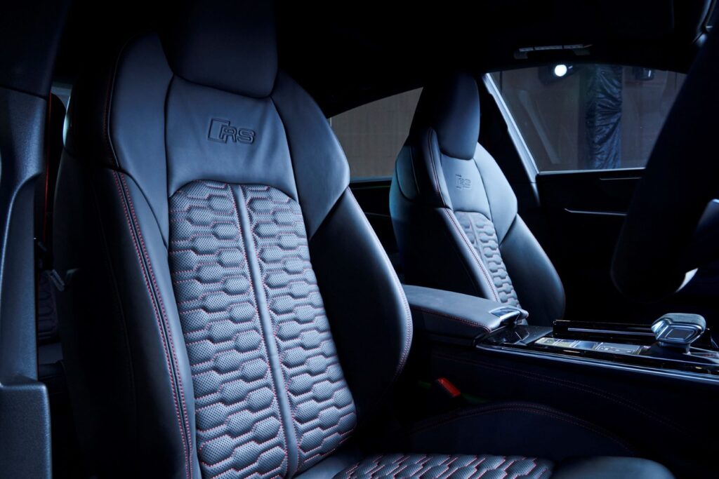 อดรีนาลีนพลุ่งพล่านกับบรรยากาศภายในห้องโดยสารที่มีความสปอร์ตสุดๆ The New Audi RS7 Sportback ถูกออกแบบอย่างพิถีพิถัน ห้องโดยสารตกแต่งด้วยลาย Carbon Twill Structure พร้อมไฟเรืองแสงในห้องโดยสาร (Contour/ambient lighting) ปรับได้มากถึง 30 เฉดสี ให้บรรยากาศการขับขี่ที่เอ็กซ์คลูซีฟ เบาะนั่งคู่หน้าแบบ RS Sports หุ้มหนัง Valcona ตกแต่งแบบ honeycomb เดินด้ายสีแดงสไตล์ RS Sports พวงมาลัยมัลติฟังก์ชั่นหุ้ม Alcantara แบบสปอร์ตท้ายตัดพร้อมสัญลักษณ์ RS และ Paddle shift คอนโซลกลางหุ้มหนัง Fine Nappa สีดำ ด้านข้างคอนโซลกลางตกแต่งด้วย Dinamica สีดำ ด้ายสีแดงสุดสปอร์ตเสมือนอยู่ในรถแข่ง จอแสดงข้อมูลการขับขี่แบบ Virtual cockpit plus แบบ RS Monitor ขนาด 12.3 นิ้ว แสดงผลแบบ Runway เครื่องบิน รวมถึงการแสดงค่าแรงจีที่เกิดขึ้นขนาดขับขี่ เทคโนโลยีล้ำสมัยด้วยระบบ MMI Navigation plus พร้อมจอสัมผัสขนาด 10.1 นิ้วและจอมัลติฟังก์ชั่นแบบสัมผัสตอบสนองการสั่งงาน (haptic feedback) ขนาด 8.6 นิ้ว พร้อม Audi drive select เลือกปรับโหมดการขับขี่ได้ทั้งแบบอัตโนมัติ หรือจะซิ่งสนุกกับ “RS MODE” ก็ทำได้อย่างง่ายดาย กระหึ่มด้วยระบบเครื่องเสียงระดับพรีเมียม Bang & Olufsen พร้อมระบบเสียง 3 มิติ 16 ลำโพง 705 วัตต์ พร้อมระบบปรับอากาศแยกอิสระ 4 โซน