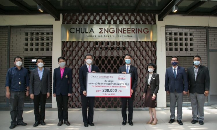 มร.ทาคาชิ ฮาตะ ประธานกรรมการมูลนิธิกลุ่มอีซูซุ และกรรมการผู้จัดการบริษัท ตรีเพชรอีซูซุเซลส์ จำกัด พร้อมด้วยคณะผู้บริหารอีซูซุ มอบเงิน 200,000 บาท ให้แก่ คณะวิศวกรรมศาสตร์ จุฬาลงกรณ์มหาวิทยาลัย ต่อเนื่องเป็นปีที่ 13 โดยมีศ. ดร.สุพจน์ เตชวรสินสกุล คณบดี เป็นผู้รับมอบ เมื่อวันที่ 15 มีนาคม ที่ผ่านมา โดยการสนับสนุนเงินกองทุนวิจัยวิศวกรรมศาสตร์จุฬาฯ-อีซูซุ มีวัตถุประสงค์เพื่อส่งเสริมความเป็นเลิศทางวิชาการและการพัฒนาความรู้ผ่านกระบวนการวิจัยด้านเทคโนโลยียานยนต์