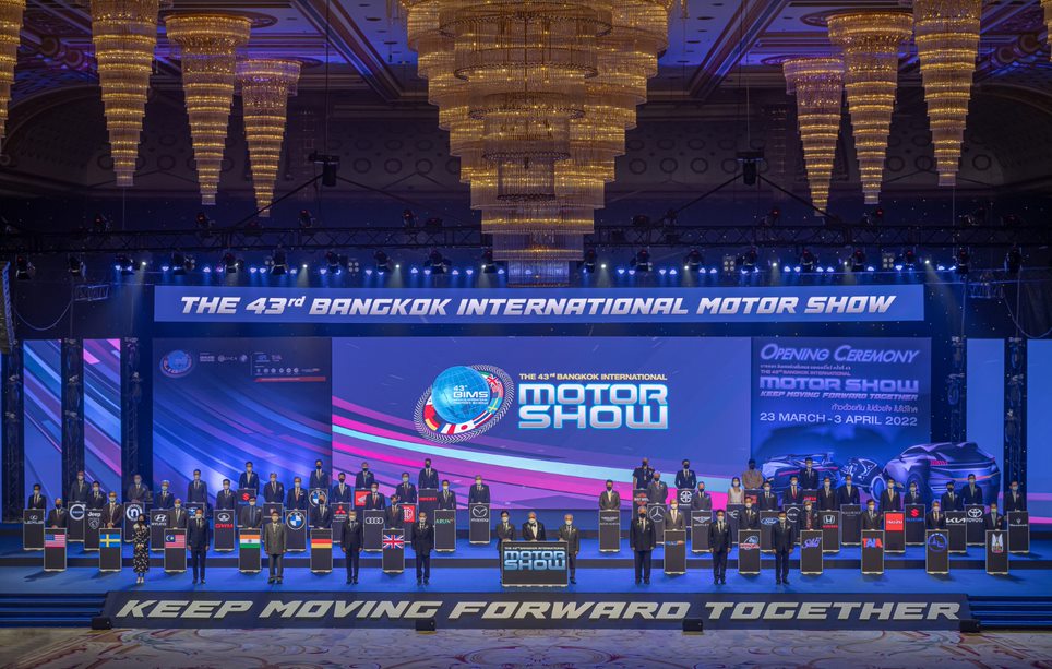บางกอก อินเตอร์เนชั่นแนล มอเตอร์โชว์ ครั้งที่ 43 เปิดฉากยิ่ งานบางกอก อินเตอร์เนชั่นแนล มอเตอร์โชว์ 2022 โดยบริษัทกรังด์ปรีซ์ อินเตอร์เนชั่นแนล จำกัด (มหาชน) จัดขึ้นภายใต้แนวคิด “ก้าวด้วยกัน ไปด้วยใจ ไปได้ไกล” หรือ “KEEP MOVING FORWARD TOGETHER” เพื่อสื่อถึง–ประสบการณ์สร้างการเรียนรู้ ปรับปรุง พัฒนาสรรค์สร้างแรงบันดาลใจในการเปิดประตูบานใหม่ๆ เพื่อการเรียนรู้ที่ไม่มีวันสิ้นสุด เปรียบเทคโนโลยีแห่งโลกยานยนต์ที่ไม่เคยมีวันหลับใหล กลั่นกรองผลิตผลแนวความคิดที่ทันยุคสมัย และความแปลกใหม่ให้กับโลกใบนี้ ทุกๆ การก้าวเดินไปข้างหน้าย่อมมีอุปสรรคอยู่บนหนทางที่ก้าวเดิน และแสงสว่างแห่งความสำเร็จจะไม่สามารถเกิดขึ้นได้หากปราศจากความร่วมแรงร่วมใจ มาร่วมมือกันสร้างความสำเร็จ ฟื้นฟูเศรษฐกิจด้วยความเป็นน้ำหนึ่งใจเดียวกัน โดยบางกอก อินเตอร์เนชั่นแนล มอเตอร์โชว์ ครั้งที่ 43 จะเป็นงานแสดงรถยนต์ที่มีรอยยิ้ม เสียงหัวเราะ และแรงบันดาลใจของใครหลายๆ คน ร่วมตอกย้ำการก้าวเดิน ทุกย่างก้าวด้วยความมั่นใจ ก้าวไปพร้อมกัน เพื่อความเป็นหนึ่งเดียว