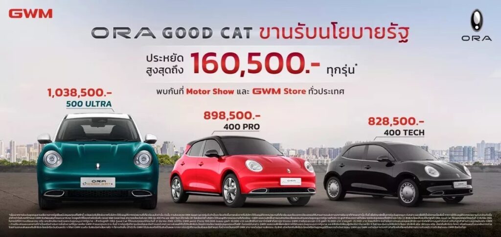 o ORA Good Cat รุ่น 400 PRO จากราคา 1,059,000 บาท เป็นราคา 898,500 บาท
