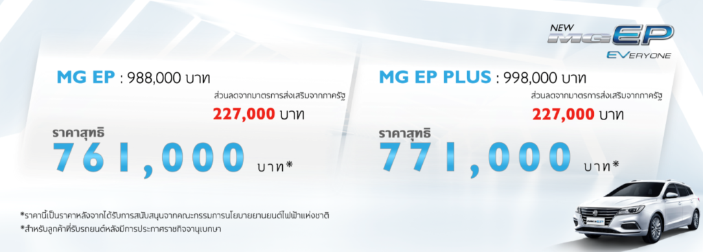 เผยราคาจำหน่ายใหม่ของ MG EP และ MG EP PLUS หลังหักส่วนลดจากนโยบายภาครัฐ