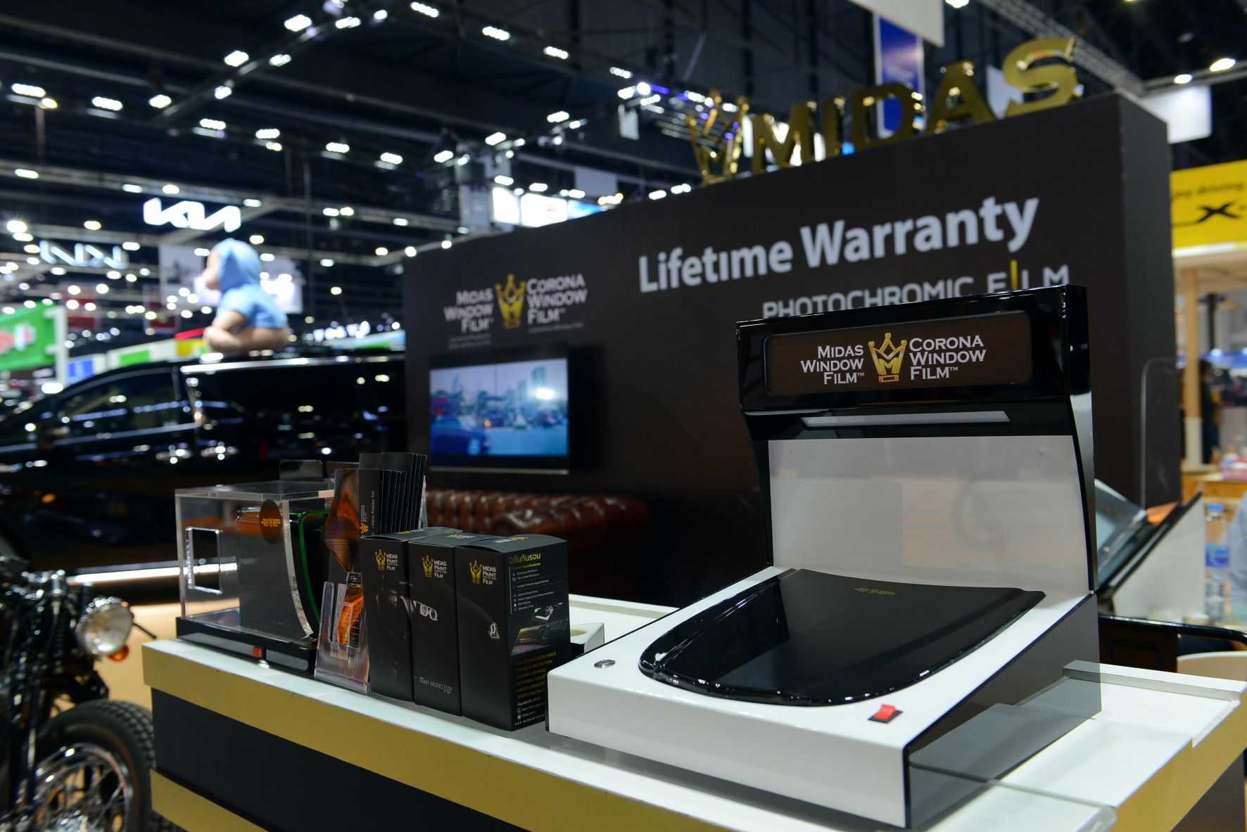 Midas and Corona ฟิล์มกรองแสงสำหรับรถยนต์ และอาคาร ระดับ Hi–end ที่มีชื่อเสียงทั้งในประเทศ และทั่วโลก นำเข้าจากประเทศสหรัฐอเมริกา ซึ่งคนไทยจะเรียกติดปากแบบสั้นๆว่า “ฟิล์มกรองแสง Midas (ไมดาส)” โดยผลิตภัณฑ์ของ Midas ถือเป็นนวัตกรรมในวงการฟิล์มรถยนต์ ที่รู้จักกันดีว่าเป็น ฟิล์มปรับแสง และกันความร้อนได้สูงถึง 99 % และยังมีฟิล์มกันรอย สำหรับแบรนด์รถหรู รวมถึงกลุ่มซูเปอร์คาร์ในไทย ต่างนิยมใช้ฟิล์ม Midas กันอย่างแแพร่หลาย