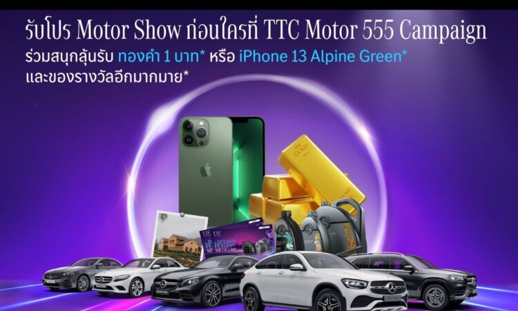 TTC Motor มอบโปรโมชั่น มอเตอร์โชว์ กับข้อเสนอ 555 Campaign ที่คุณไม่ควรพลาดรับข้อเสนอพิเศษ ผ่อนเริ่มต้น 1% ของราคารถ นาน 5 ปีกับโปรแกรม mySTAR ,ฟรี Waranty 5 ปี , ฟรีประกันชั้นหนึ่ง 5 ปี และร่วมลุ้นของรางวัลพิเศษมากมาย ได้แล้ววันนี้ – 3 เมษายนนี้