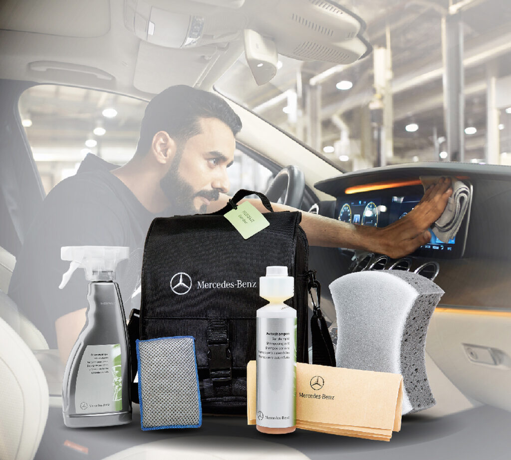 – ยอดค่าใช้จ่ายหลังหักส่วนลด 30,000 บาท ขึ้นไป เลือกรับ MB Car Care Set ชุดน้ำยาดูแลรถยนต์สำหรับภายนอกหรือภายใน อย่างใดอย่างหนึ่ง (มูลค่า 3,712 บาท)
