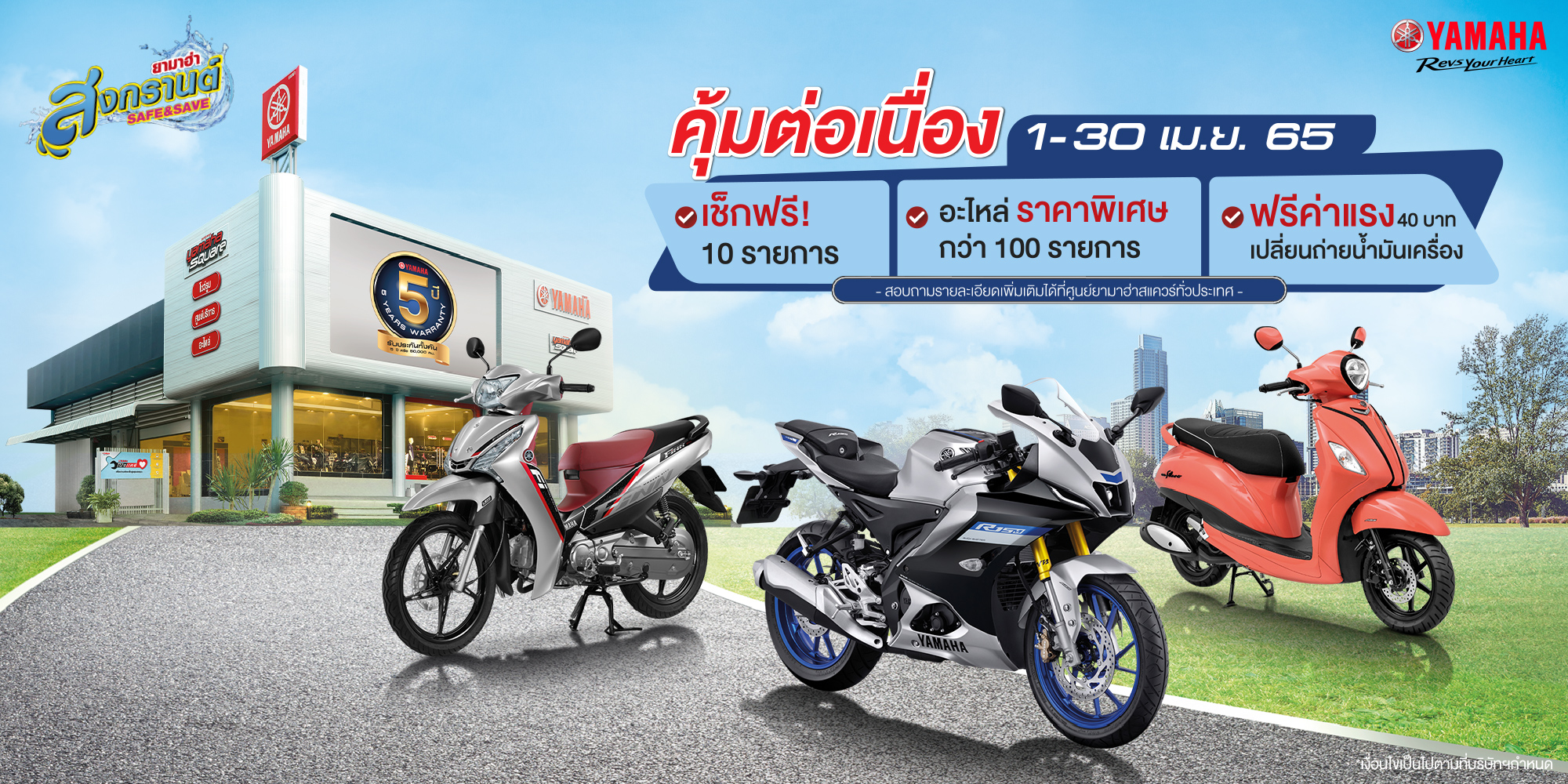 ยามาฮ่า สงกรานต์ Safe & Save ยามาฮ่าใจดี ลดครึ่งราคาค่าเปลี่ยนถ่ายน้ำมันเครื่อง พร้อมตรวจเช็คฟรี 10 รายการ