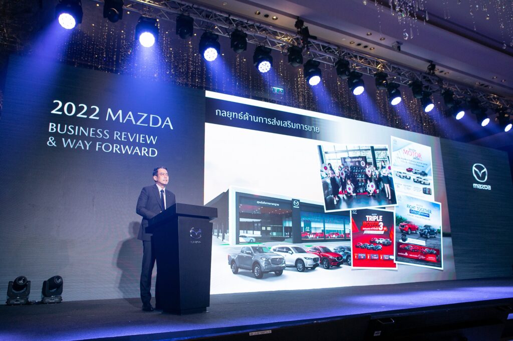 มาสด้าจัดงาน “2022 Mazda Business Review & Way Forward” ภายใต้ธีม “ท้าทายความสำเร็จอีกขั้น…สู่อนาคตที่เป็นไปได้” หรือ “Challenge to the New Possibilities” พร้อมเปิดเผยถึงผลสำเร็จในการดำเนินธุรกิจ ประจำปีงบประมาณ 2564 โดยเฉพาะตัวเลขยอดขายทะลุ 35,654 คัน ครองส่วนแบ่งการตลาด 4.5% โดยเฉพาะรถยนต์นั่งมาสด้า2 ยังคงครองใจลูกค้ามากที่สุด ด้วยยอดขายเกือบ 20,000 คัน ครอสโอเวอร์เอสยูวีมาสด้า CX-30 และมาสด้า CX-3 รวมกันกว่า 12,000 คัน เดินหน้าแตกไลน์ธุรกิจใหม่กับมาสด้า CPO ยกระดับมูลค่าราคารถมือสอง ปรับกลยุทธ์การบริหารธุรกิจสู่ความยั่งยืน ด้วย Retention Business Model เน้นสร้างคุณค่าของแบรนด์จากการบริการ ยกระดับการดูแลลูกค้าระดับพรีเมี่ยมด้วยโปรแกรม Privilege ตั้งเป้าปีนี้ยอดขายทะลุ 40,000 คัน เติบโตเพิ่มขึ้น 15%